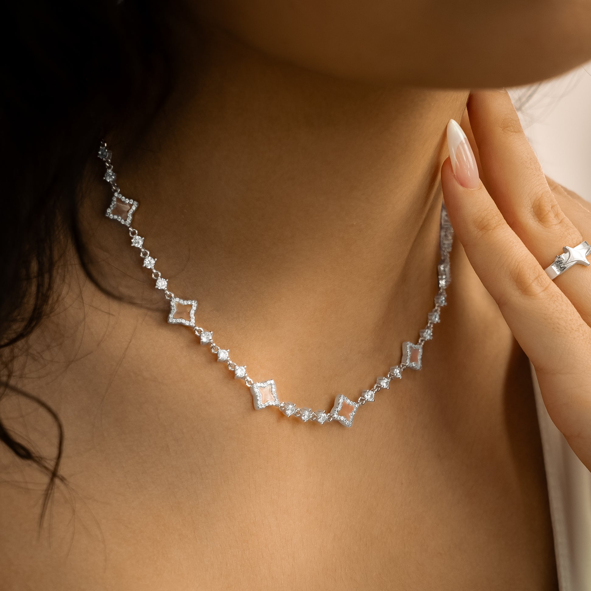 Découvrez notre Chaîne Flower Tennis, une pièce exquise qui marie l'élégance intemporelle de la chaîne tennis et la délicatesse des fleurs. Chacune des fleurs, ornée d'une pierre imitation nacre rose et d'une épaisseur de 8 mm, ajoute une touche de charme et de sophistication à cette chaîne de 3 mm.