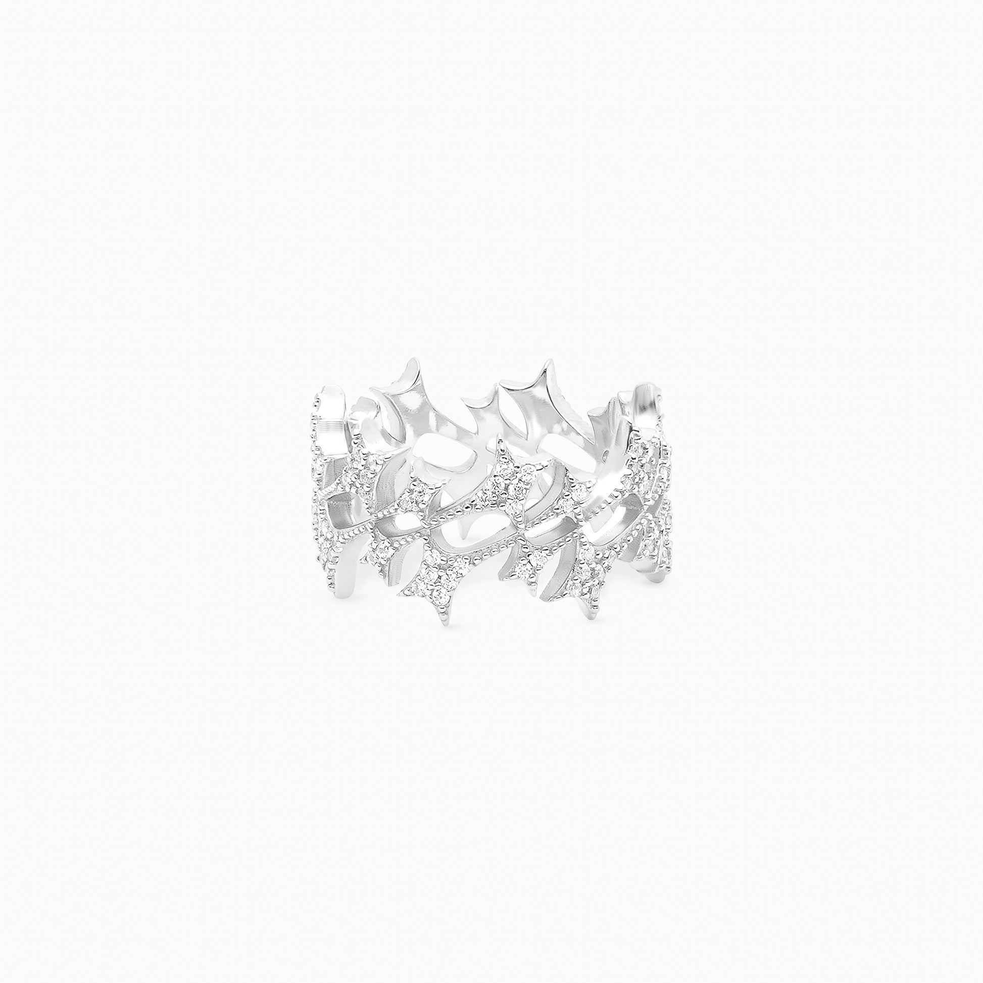 La Monogram Ring reprend le monogramme Make It Shine dans un design ajouré au style affirmé. Ses 10 mm d’épaisseur imposent style et caractère, sublimés par des oxydes de zirconium pour un éclat unique à chaque outfit.