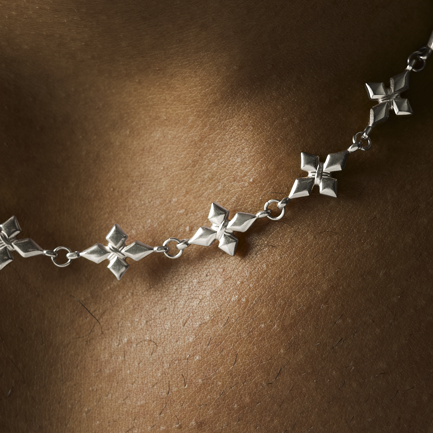 Orné d'un pendentif de 20 mm, cette pièce impose un design fort, qui incarne la grandeur — un rappel que la lumière se révèle toujours après l’épreuve.