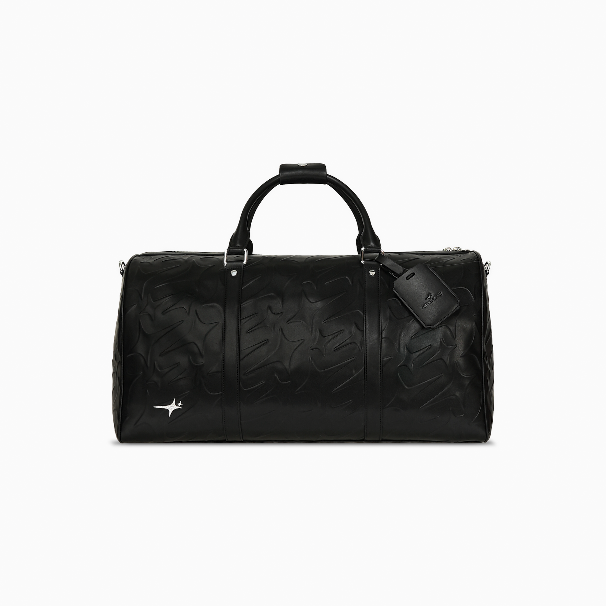 Le Travel Bag Monogram, conçu en similicuir noir, allie fonctionnalité et design affirmé. Il est pensé pour vous accompagner dans tous vos déplacements, du quotidien aux voyages. Son style est marqué par le monogramme Make It Shine embossé, qui apporte un relief travaillé, et par le logo métallique de 3 cm serti de pierres moissanite, signature emblématique de la maison. Pratique et élégant, c’est le compagnon idéal pour un look urbain et sophistiqué.