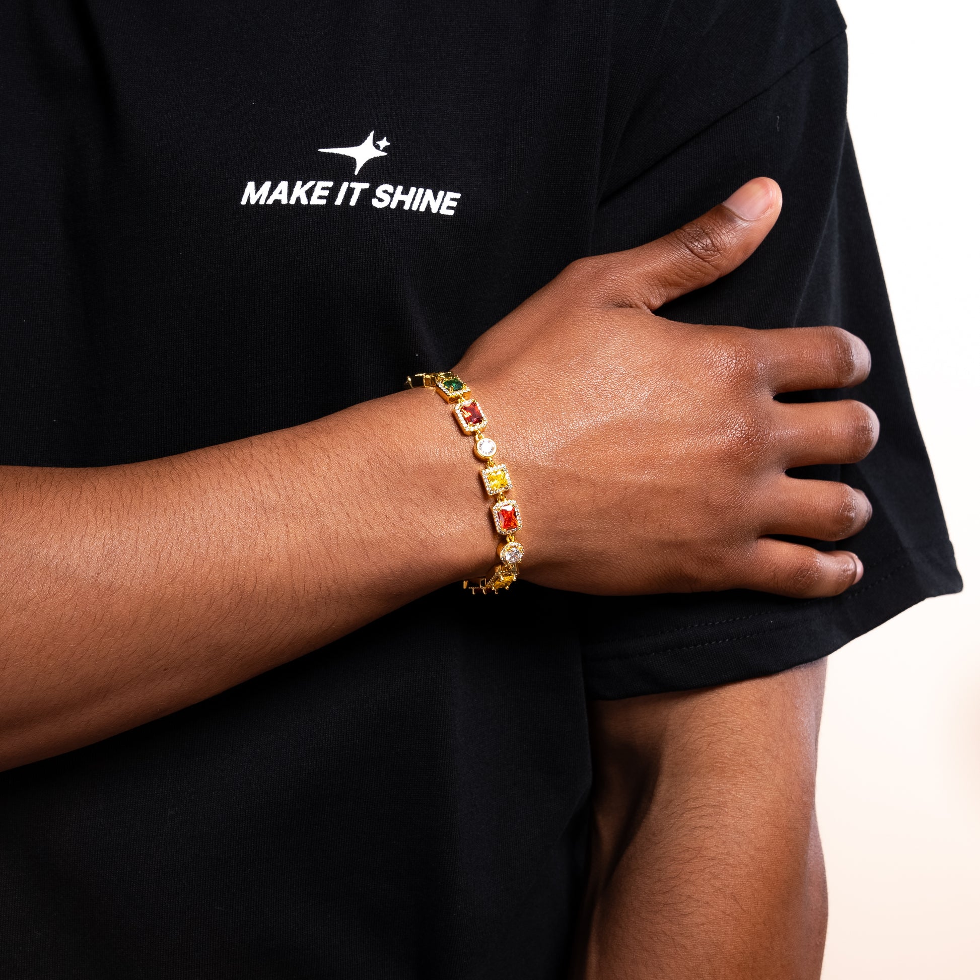 Découvrez notre Bracelet Multi Gemstone, une pièce exquise qui captive par sa beauté et son éclat. Chaque pierre, de forme et de couleur variées (jaune, rouge, vert et violet) est soigneusement sélectionnée pour créer une harmonie visuelle envoûtante. Avec des gemmes de 8 mm d'épaisseur, ce bracelet offre un véritable éventail de couleurs éclatantes.