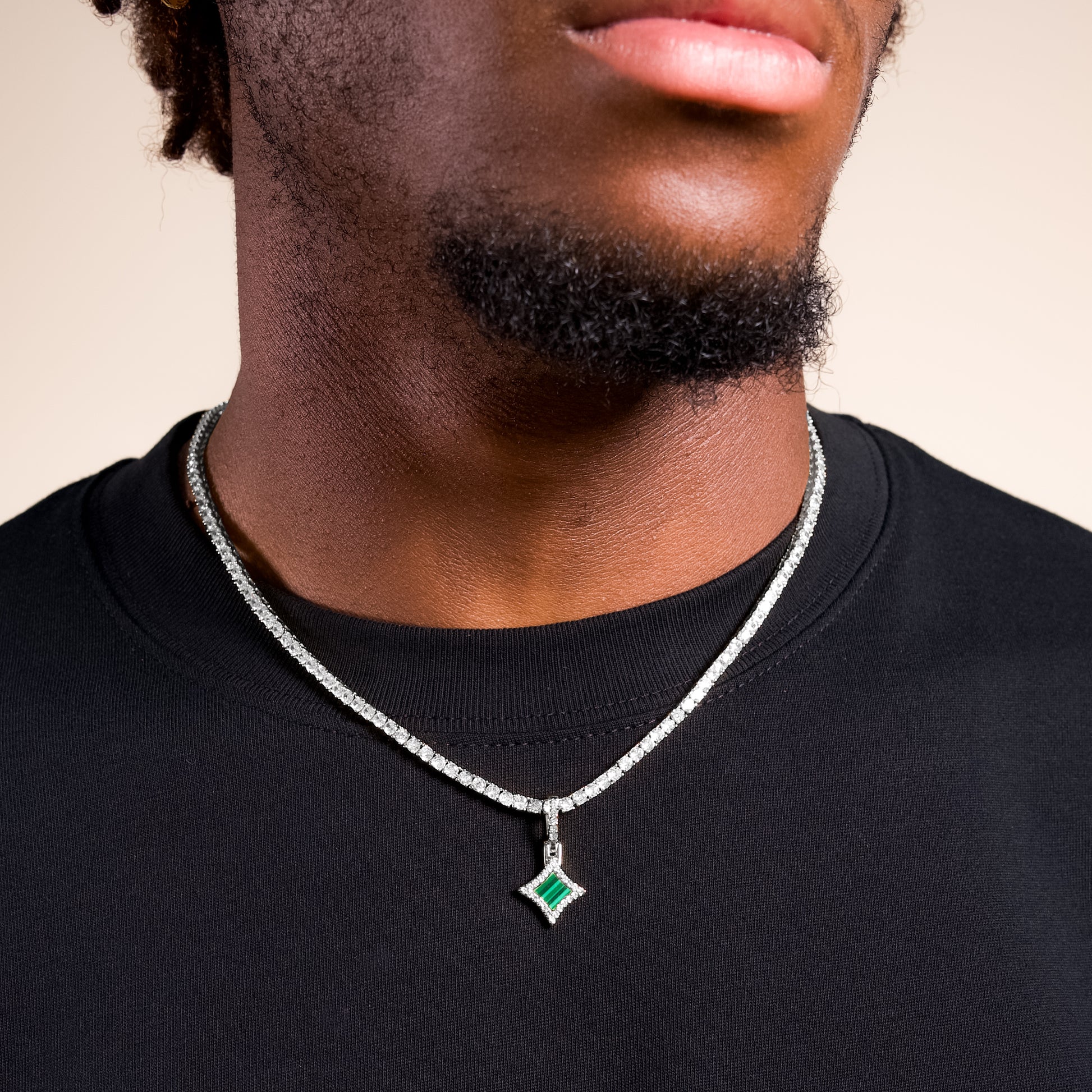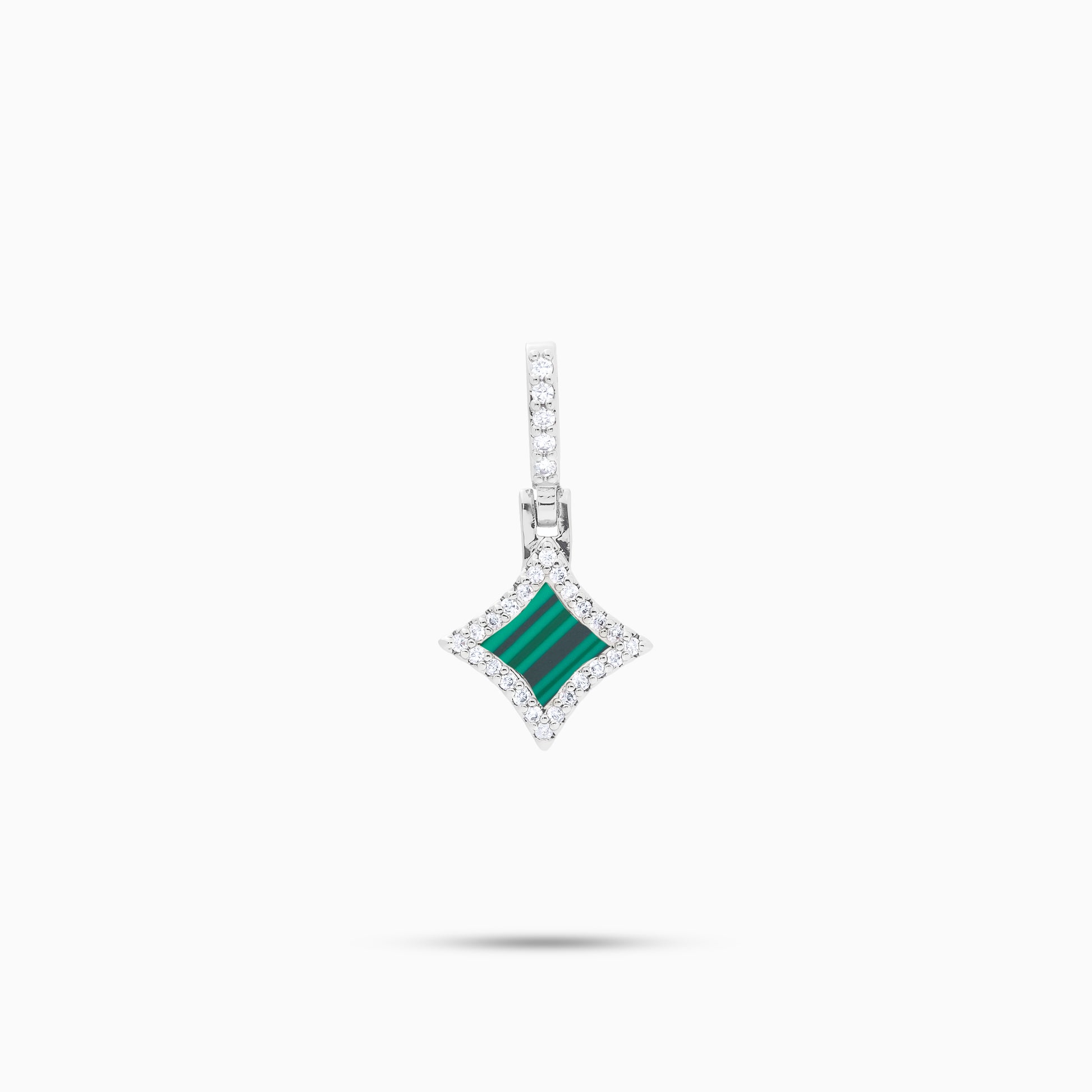 Voici notre pendentif Star, alliant élégance et éclat. Au cœur de ce bijou, une étoile sertie de pierres scintillantes met en valeur une pierre centrale en imitation malachite, le tout offrant une épaisseur de 8 mm pour un charme subtil et lumineux.