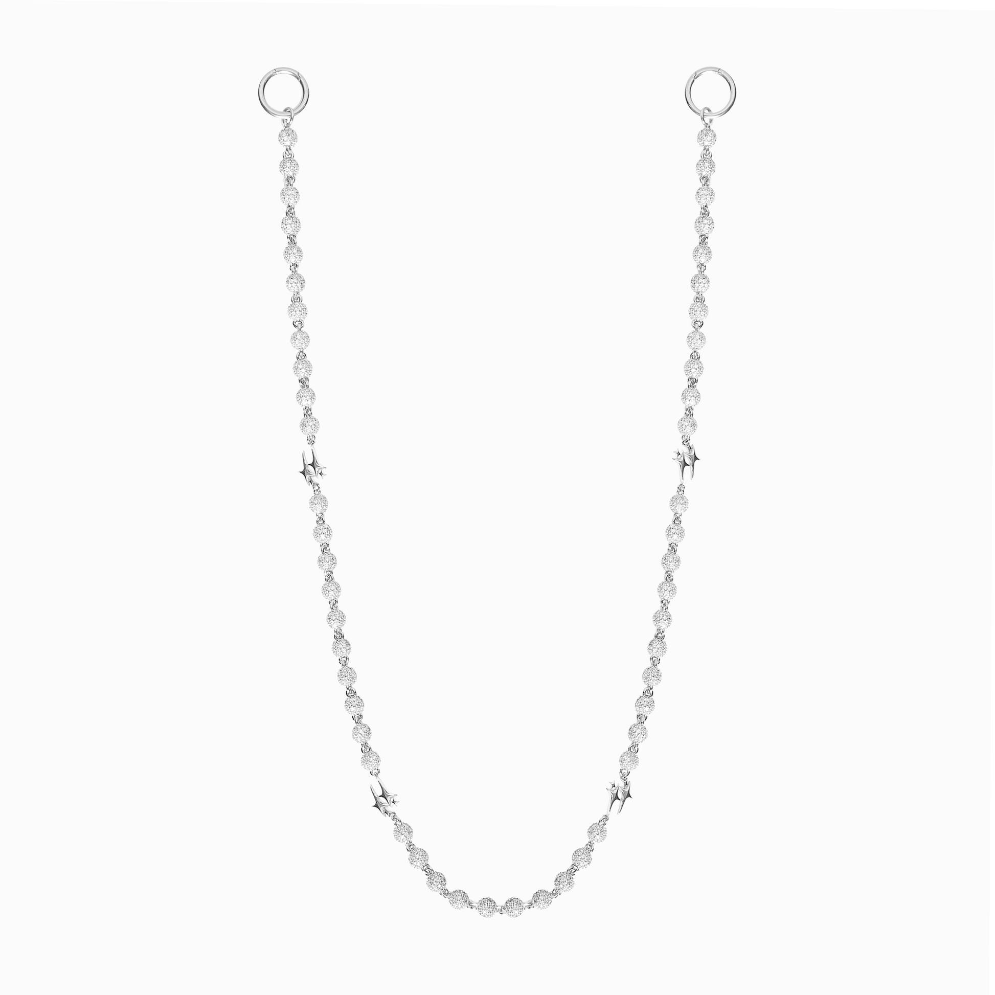 Découvrez notre Wallet Chain Iced Bead Link Signature, une pièce élégante qui associe des maillons ronds entièrement pavés d’oxydes de zirconium à notre motif étoile emblématique, subtilement réparti sur toute la longueur. Sa finition argentée lui confère un éclat raffiné, idéal pour sublimer une tenue du quotidien avec une touche de caractère.
