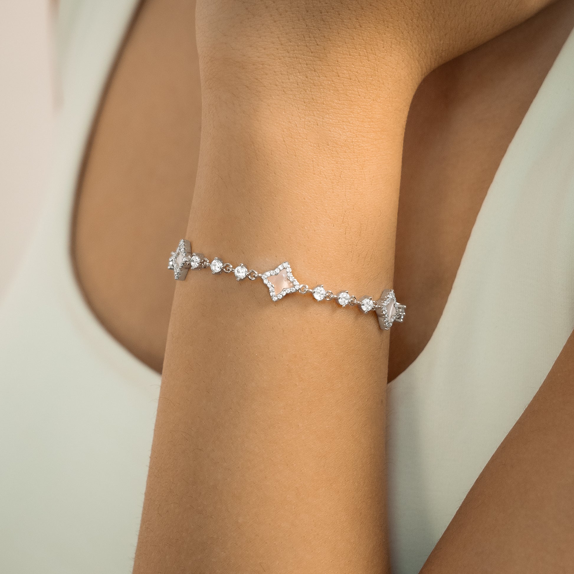 Discover our Flower Tennis Bracelet, an exquisite piece that combines the timeless elegance of the tennis bracelet and the delicacy of flowers. Each of the flowers, adorned with an imitation mother-of-pearl stone and measuring 8 mm thick, adds a touch of charm and sophistication to this 3 mm bracelet.