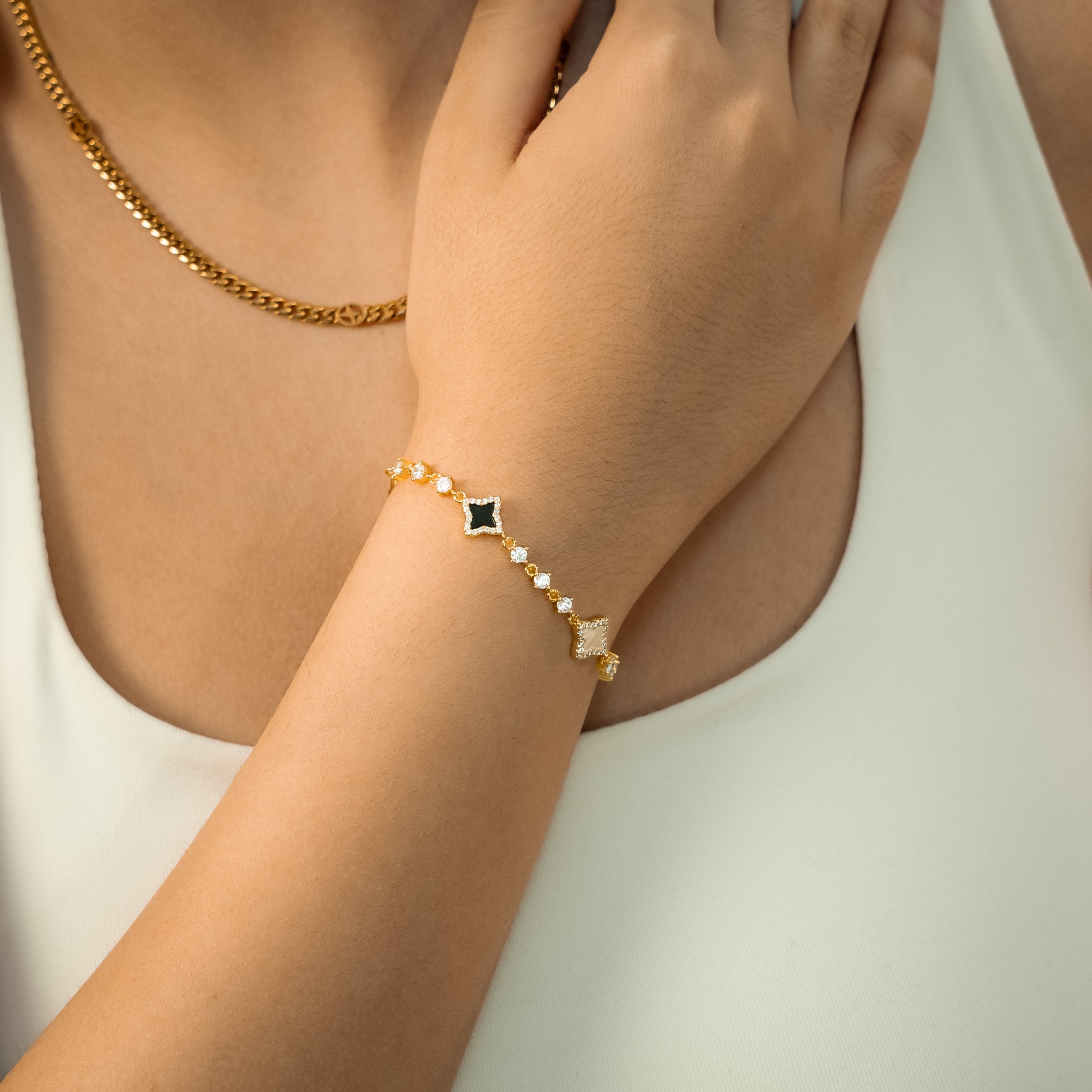 Discover our Flower Tennis Bracelet, an exquisite piece that combines the timeless elegance of the tennis bracelet and the delicacy of flowers. Each of the flowers, adorned with an imitation mother-of-pearl stone and measuring 8 mm thick, adds a touch of charm and sophistication to this 3 mm bracelet.