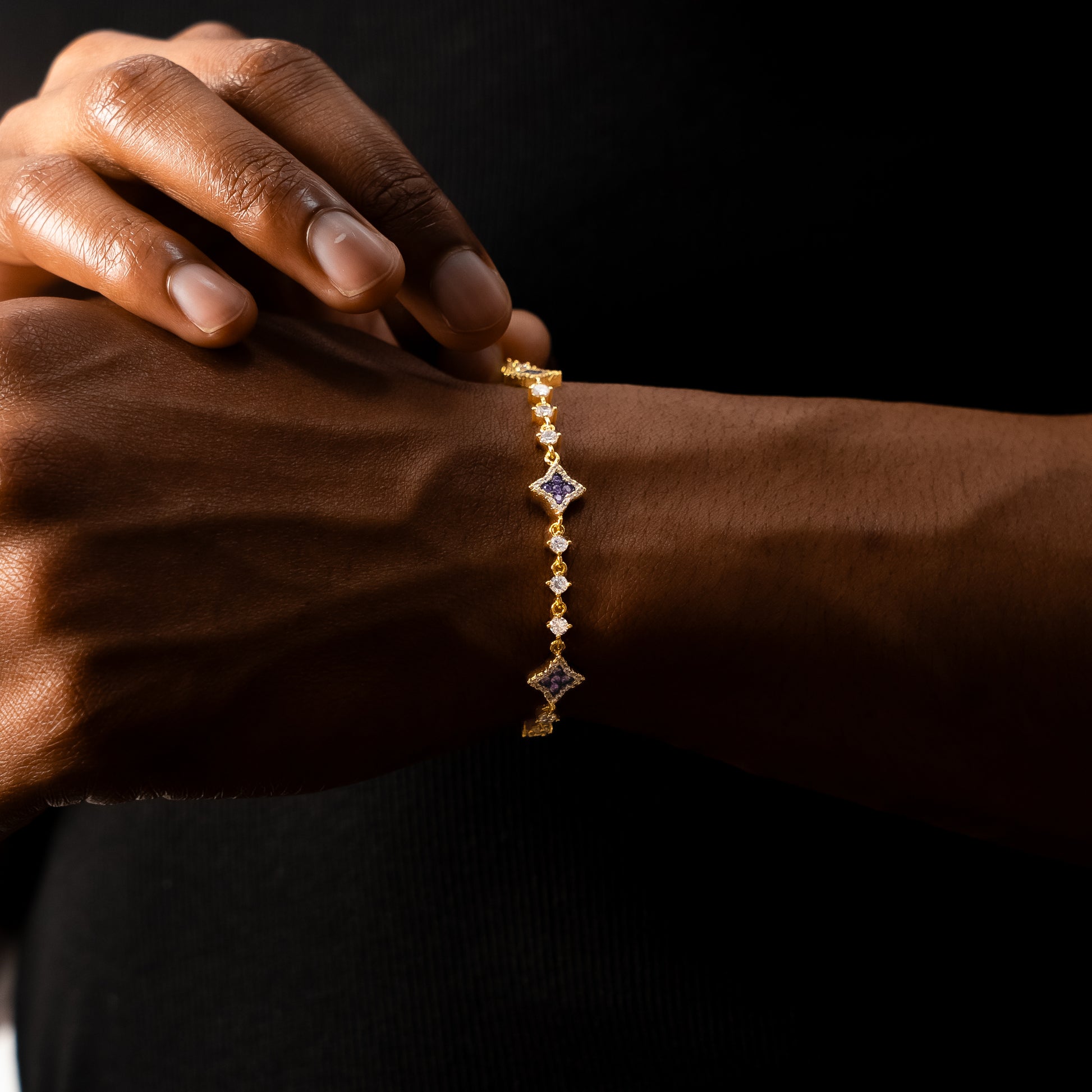 Discover our Flower Tennis Bracelet, an exquisite piece that combines the timeless elegance of the tennis bracelet with the delicacy of flowers. Each of the flowers, adorned with sparkling purple stones and measuring 8 mm thick, adds a touch of charm and sophistication to this 3 mm bracelet.