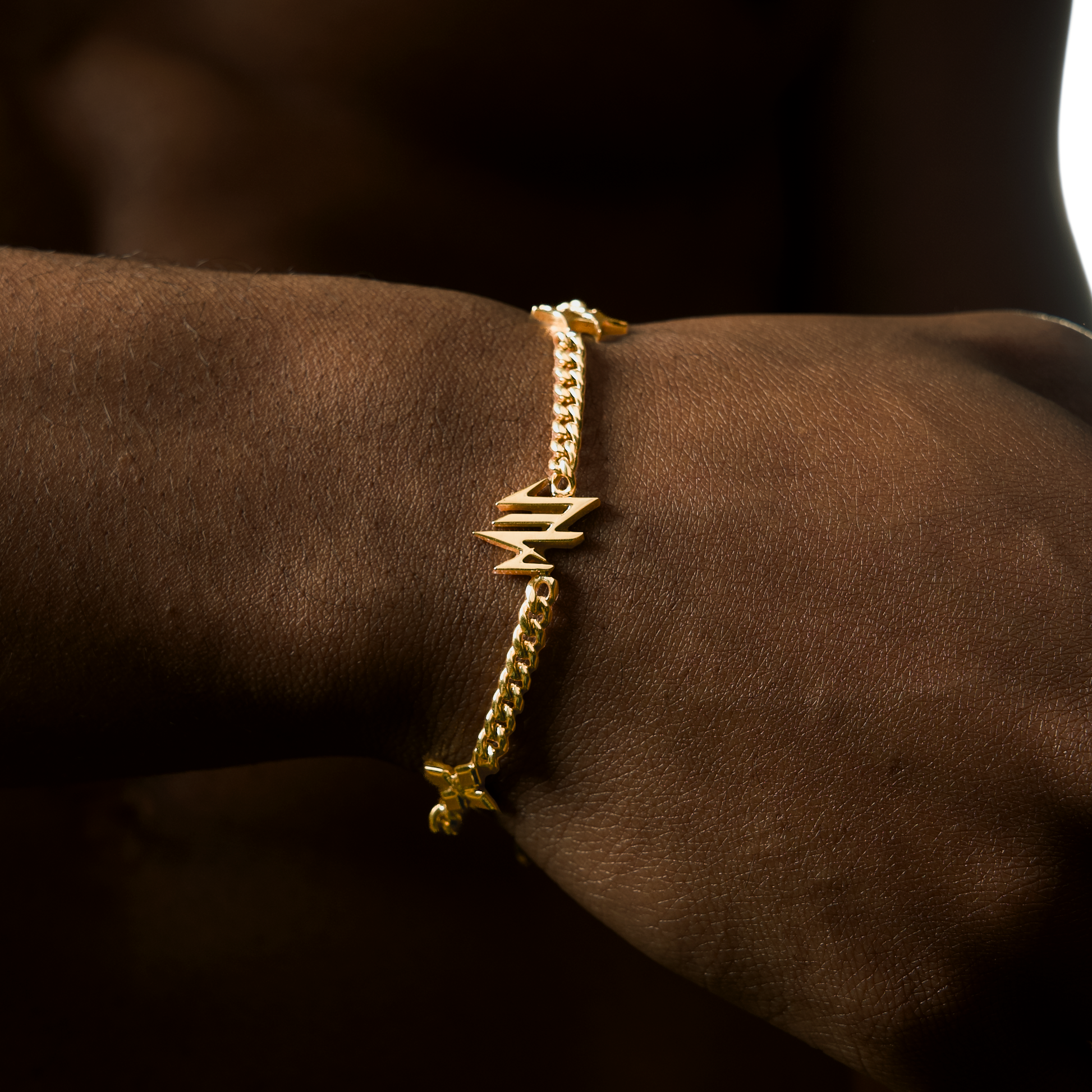 The MIS Cuban Bracelet combines three iconic Make It Shine symbols: the star-spangled cross, the double star logo, and the MIS logo.