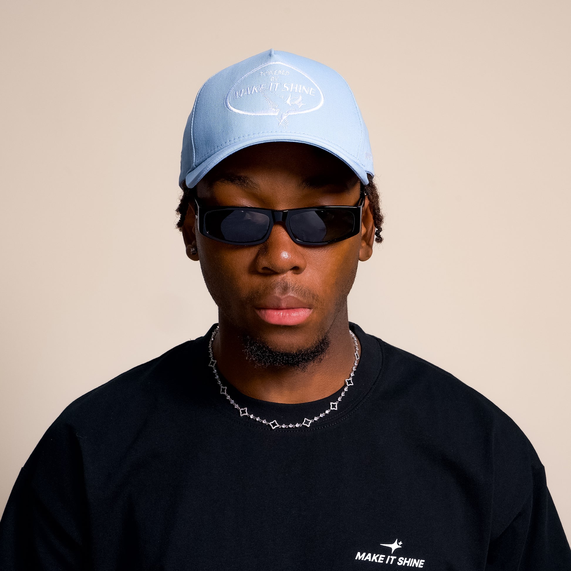 Discover our Signature Cap, an adjustable SnapBack cap for a perfect fit that features an embroidered patch on the front with the words "Powered by Make it Shine" and an eagle subtly integrated into our logo. On the left side, "Make it Shine" is embroidered, while the right side is adorned with our iconic logo. A stylish and unique piece to complete your outfit.