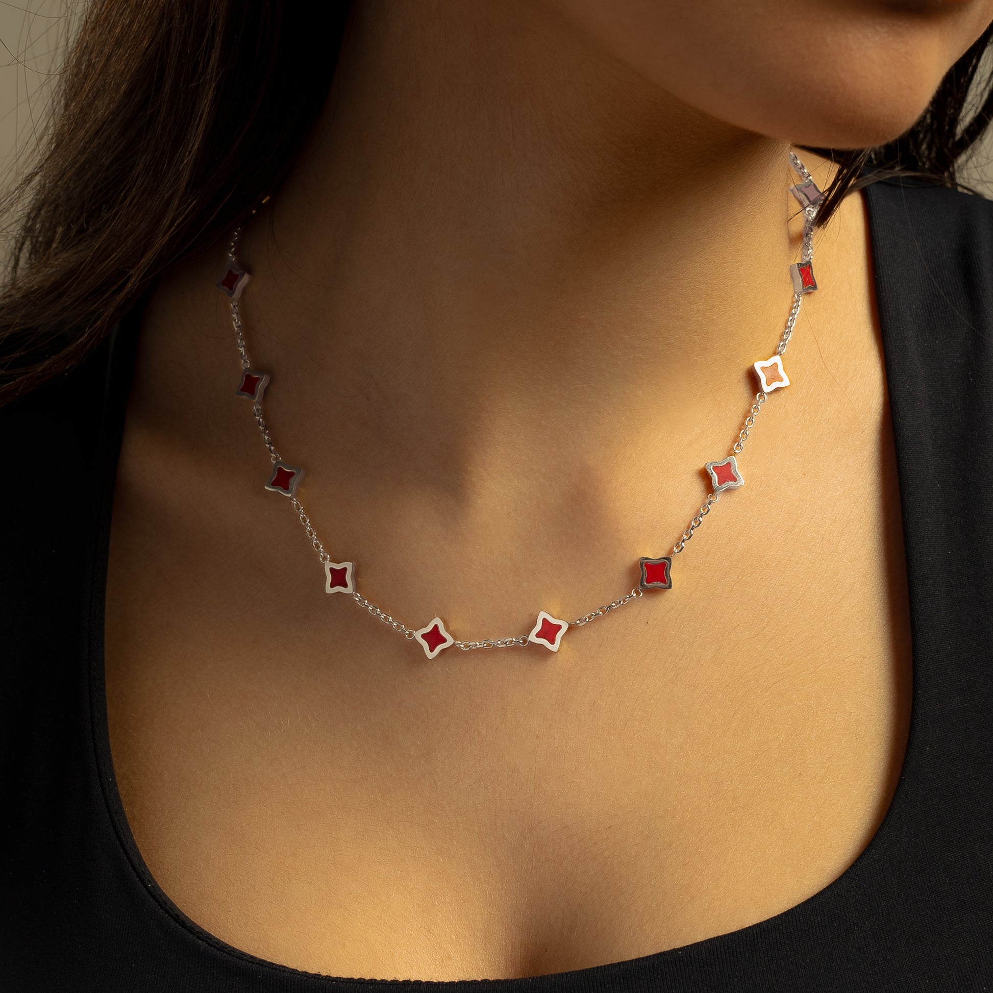 Discover our Flower Chain, an exquisite piece that combines the timeless elegance of a cable chain with the delicacy of flowers. Each flower, adorned with a cornaline imitation stone and measuring 8mm in thickness, adds a touch of charm and sophistication to this 2mm chain.