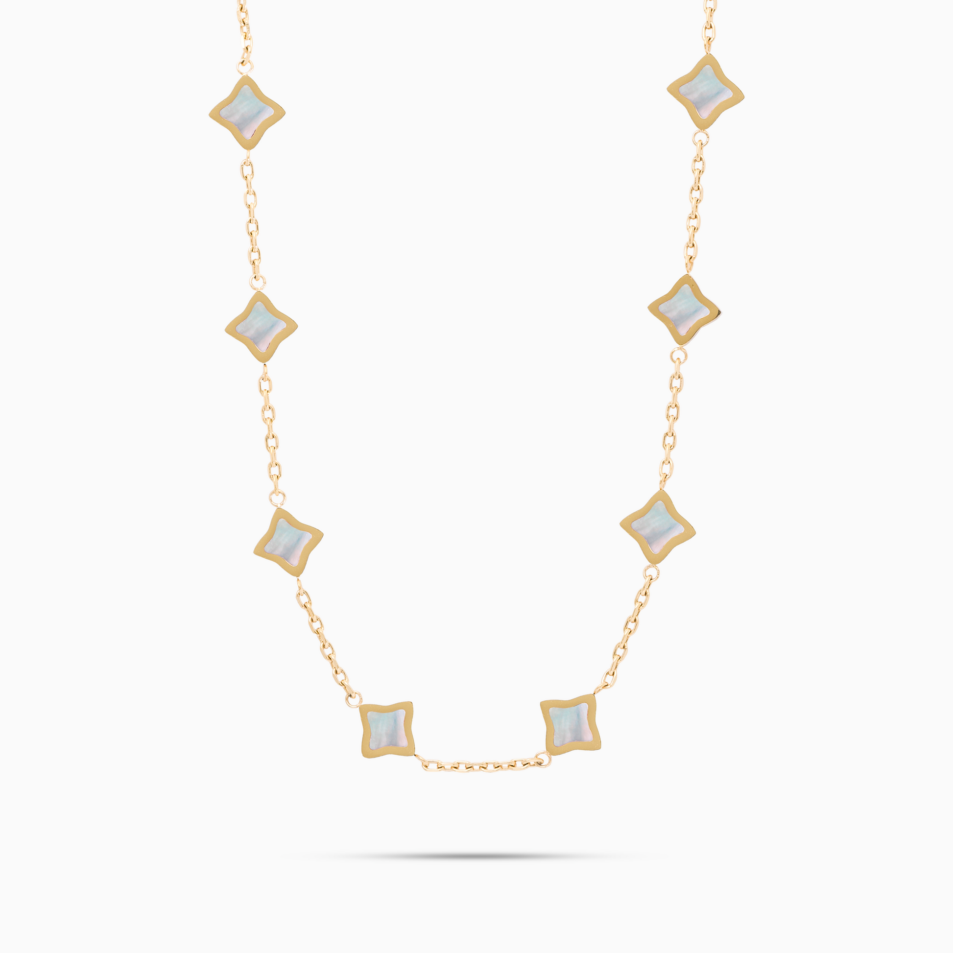Discover our Flower Chain, an exquisite piece that combines the timeless elegance of a cable chain with the delicacy of flowers. Each flower, adorned with a Mother-of-pearl imitation stone and measuring 8mm in thickness, adds a touch of charm and sophistication to this 2mm chain.