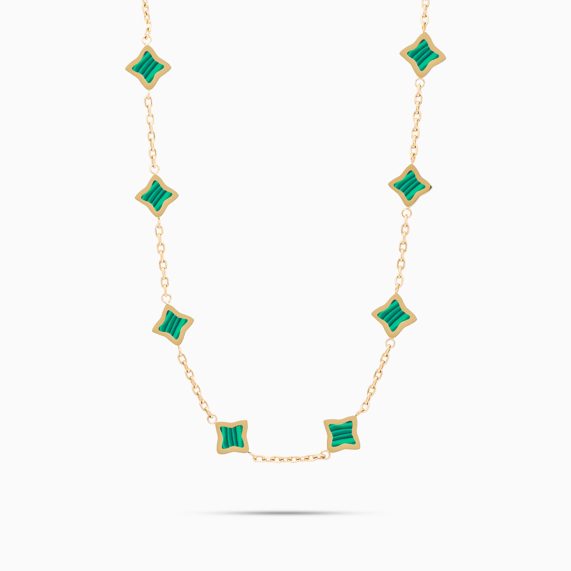Discover our Flower Chain, an exquisite piece that combines the timeless elegance of a cable chain with the delicacy of flowers. Each flower, adorned with a Malachyte imitation stone and measuring 8mm in thickness, adds a touch of charm and sophistication to this 2mm chain.