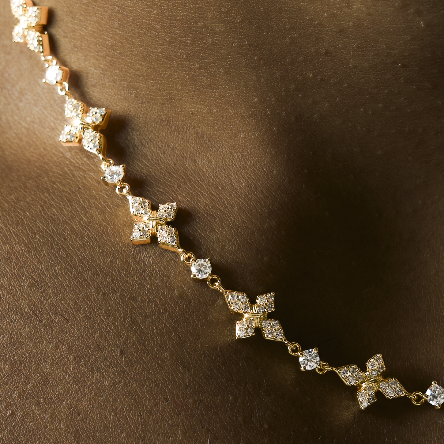 Composed of a succession of sculpted starry crosses set with zirconium oxides, it symbolizes resilience, transcendence and the light born from hardship.