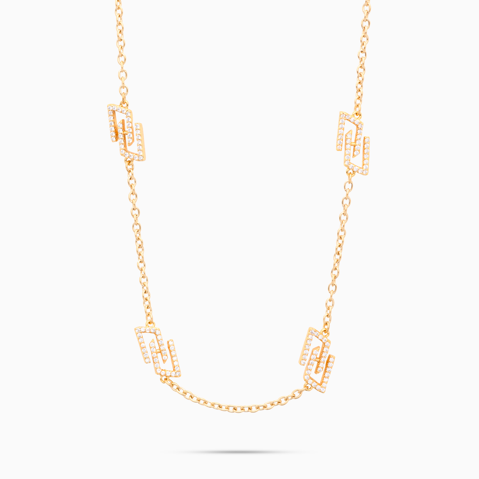 Here is our Monogram Chain, a refined and remarkable piece. Each of our brand's monograms, integrated into a 3mm cable chain, is delicately adorned with sparkling stones. Precision crafted, this chain captures the essence of our brand with sophistication and style.
