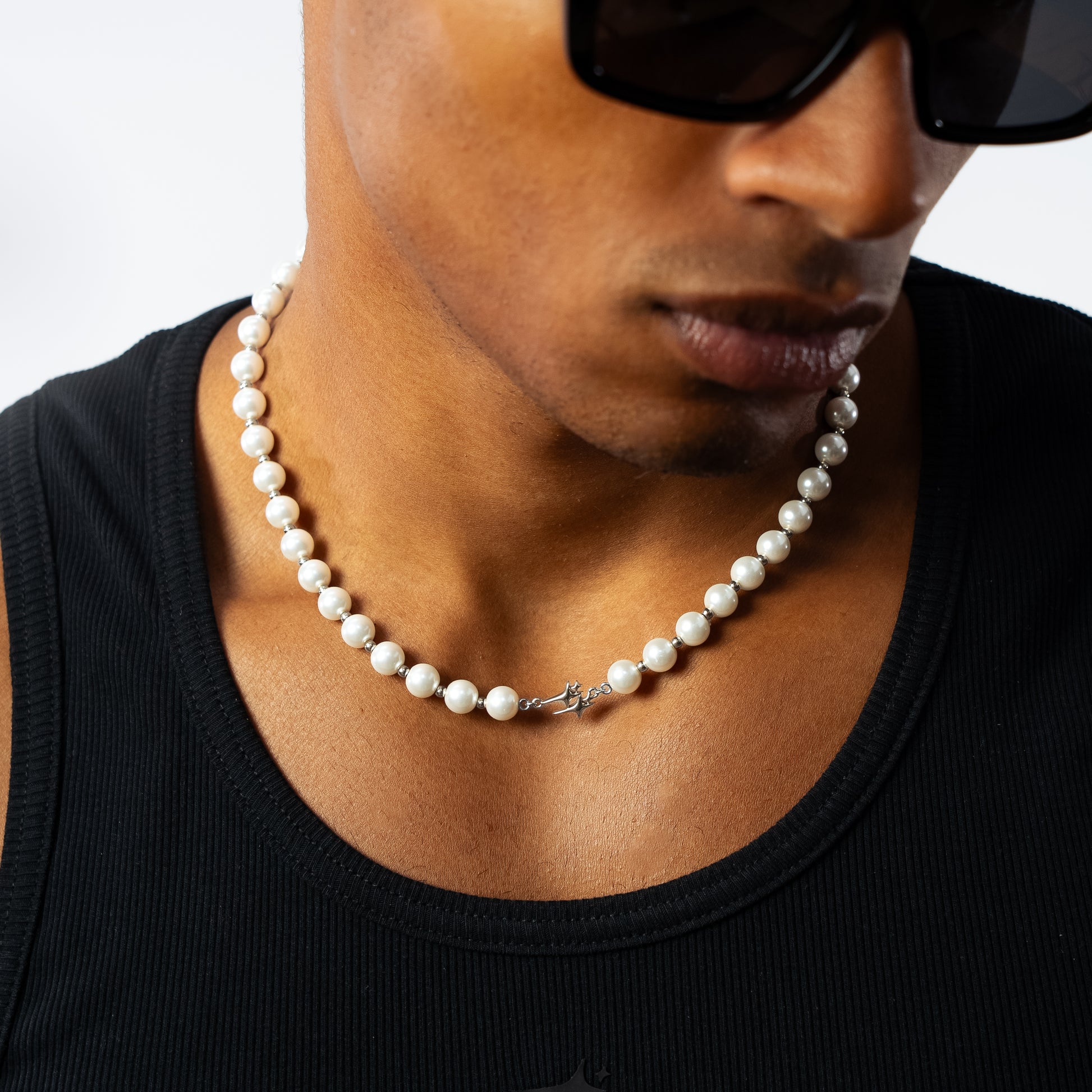 Discover our Double Stars beaded chain , a piece that is both minimalist and dazzling. Made of 8mm white pearls, it features a centrally positioned double Make it Shine logo, adding a subtle and elegant touch. A sleek creation that combines softness and character, ideal for completing a refined look with a discreet signature.