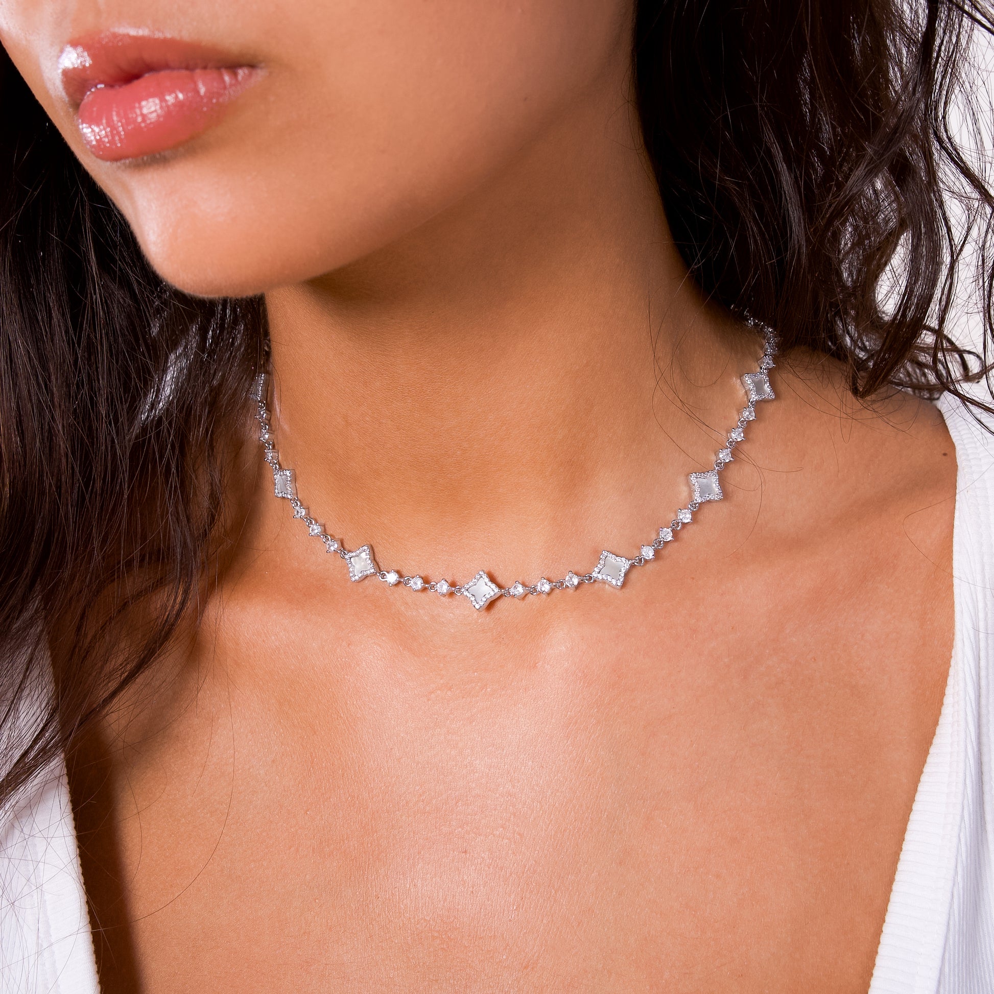 Silver-finish metal and CZ stones