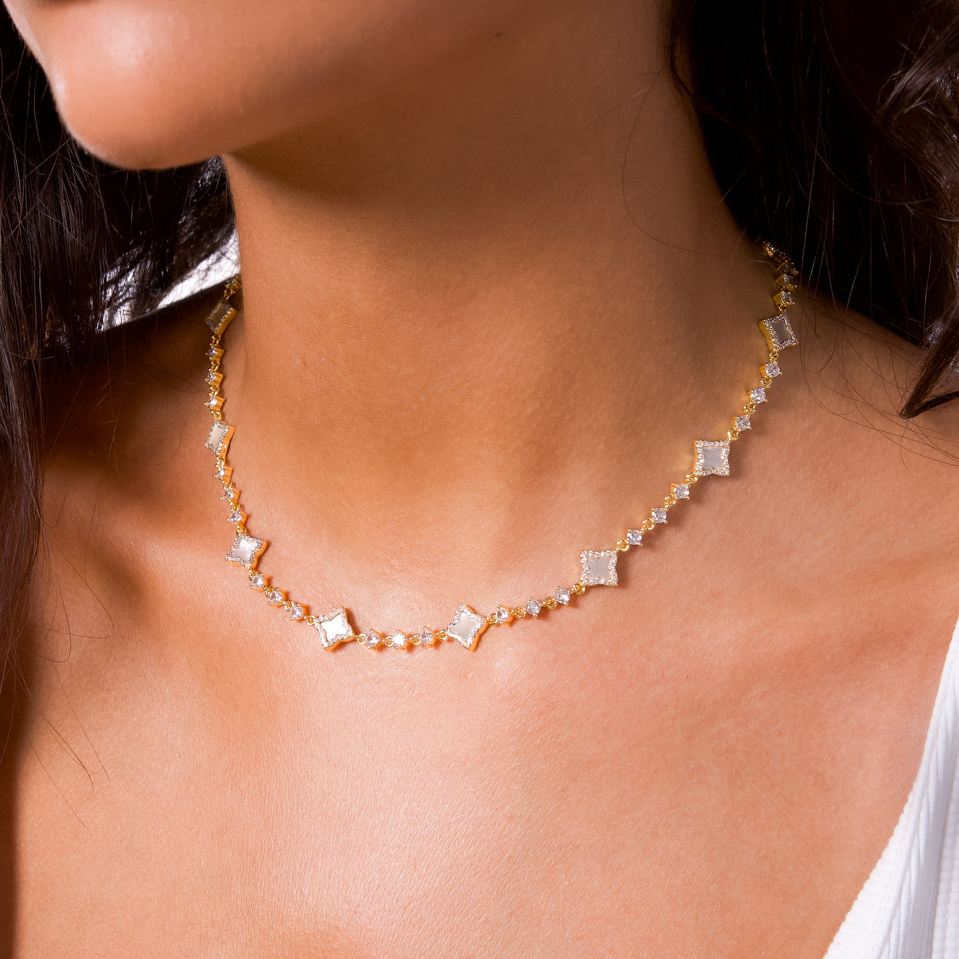 Discover our Flower Tennis Chain, an exquisite piece that combines the timeless elegance of the tennis bracelet with the delicacy of flowers. Each flower, adorned with an imitation mother-of-pearl stone and measuring 8 mm thick, adds a touch of charm and sophistication to this 3 mm bracelet.