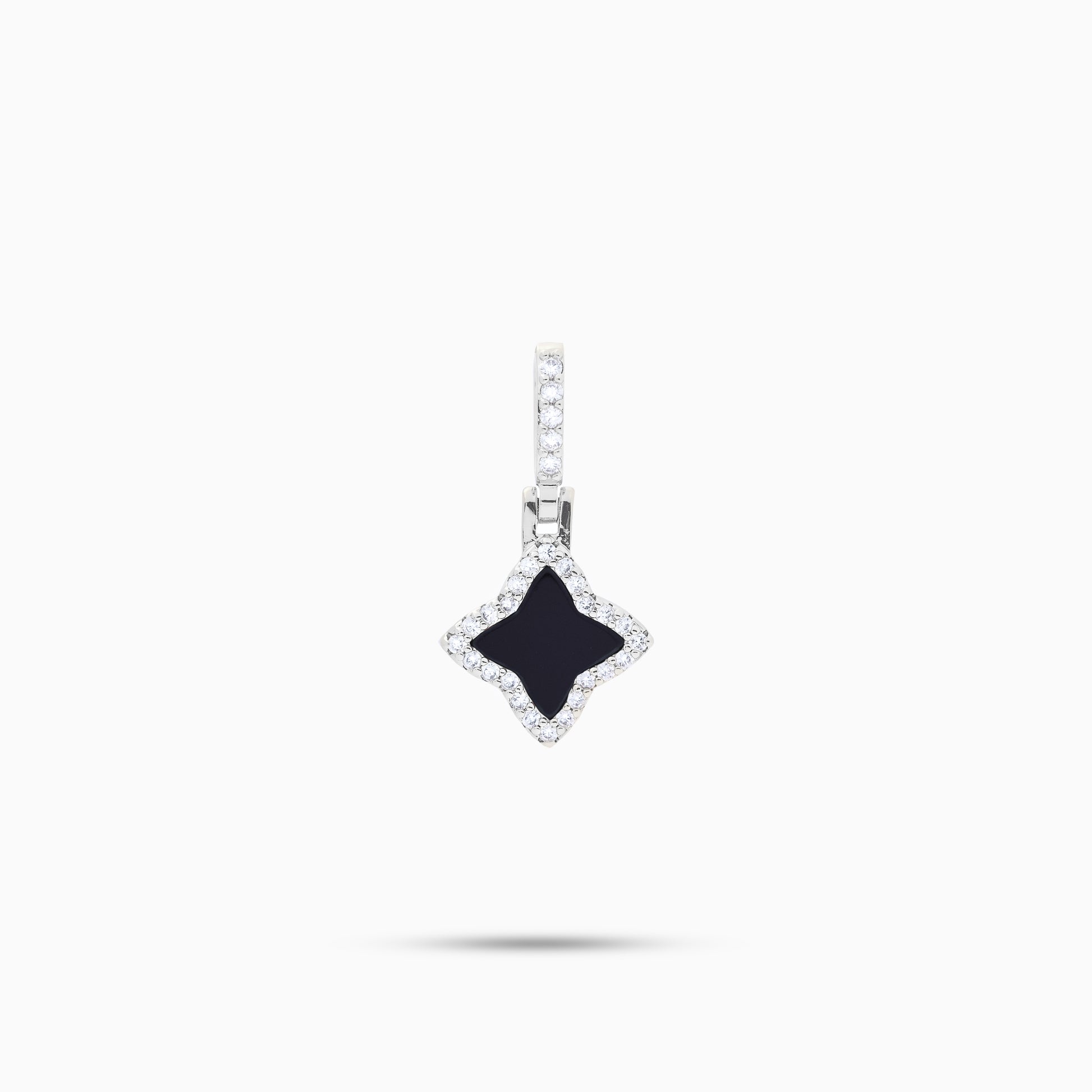 Here is our Flower pendant, combining delicacy and timeless refinement. At the heart of this jewel, a flower encrusted with sparkling stones highlights a central stone in imitation onyx, offering a thickness of 8 mm for a subtle and luminous charm.