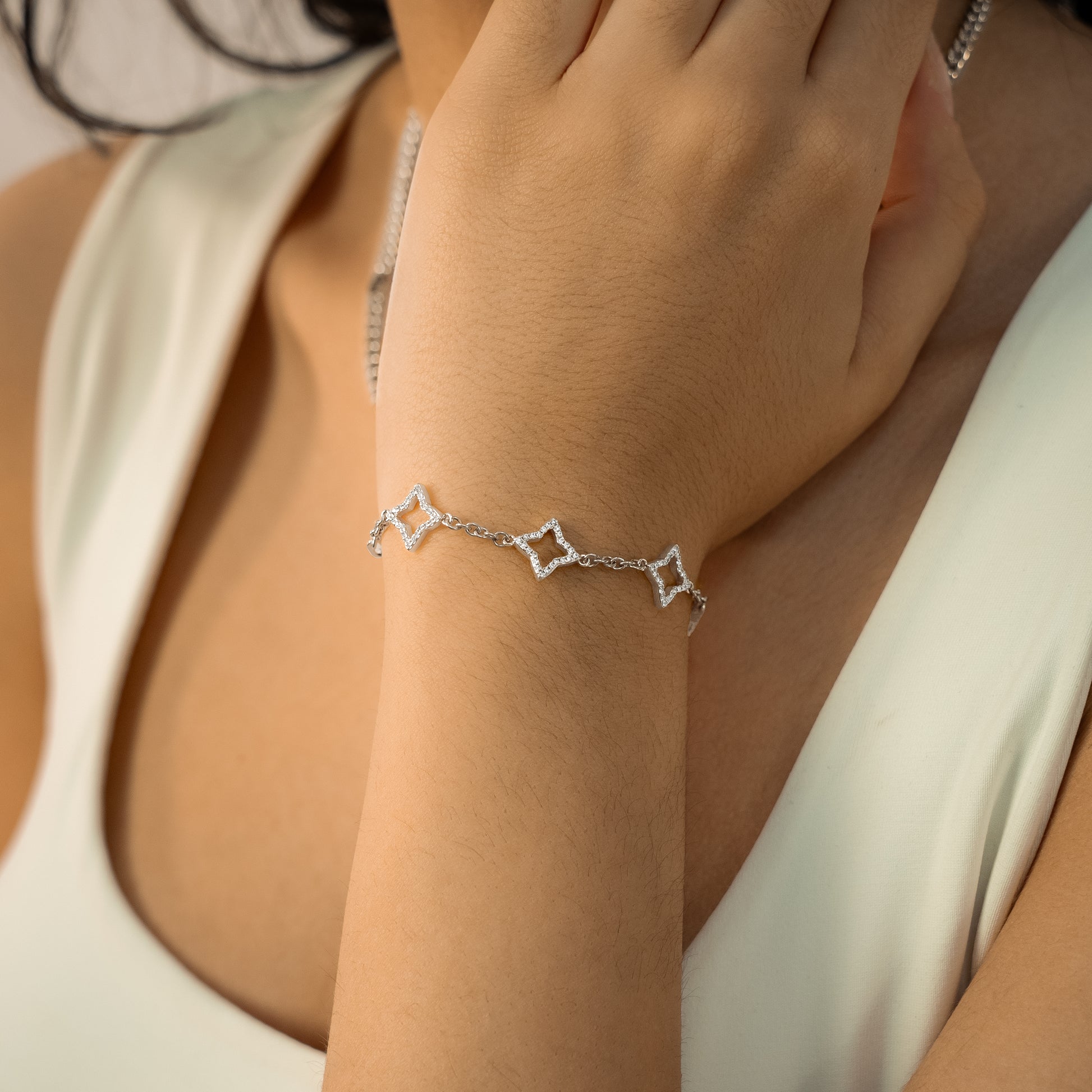 • Sterling silver jewelry (925) & CZ stones or Moissanite VVS stones: A timeless and precious alternative. Resistant to water and sweat, it may naturally develop a slight patina over time. A soft cloth will easily restore its original shine.
