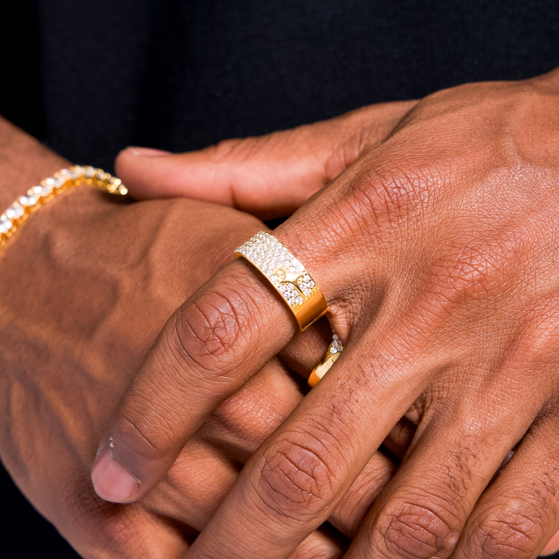 Discover our Signature Iced Band Ring, a refined piece from Make it Shine. With its 8 mm band partially set with cubic zirconia and its discreet logo, this ring embodies elegance and refined style.