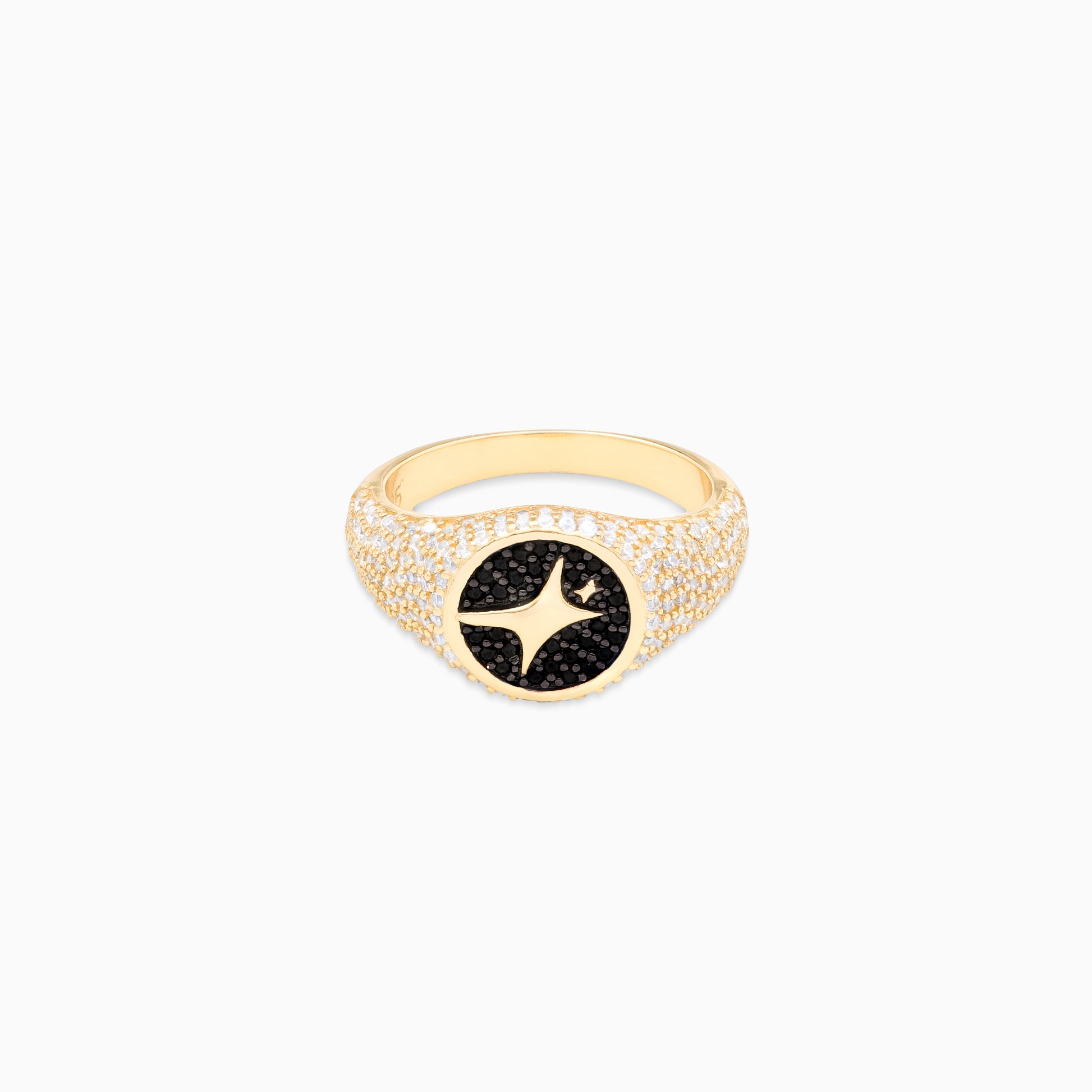 Discover our Iced Round signet ring with a 10 mm thick round base. Featuring our iconic logo, accompanied by black and white cubic zirconia, this ring is a trendy essential.