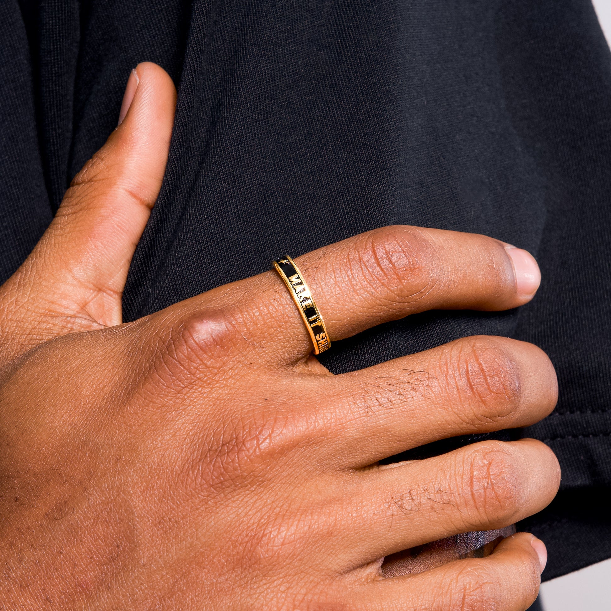 Discover our Make it Shine ring, a 4mm ring painted with black enamel paint and subtly marked with our brand name "Make it Shine".