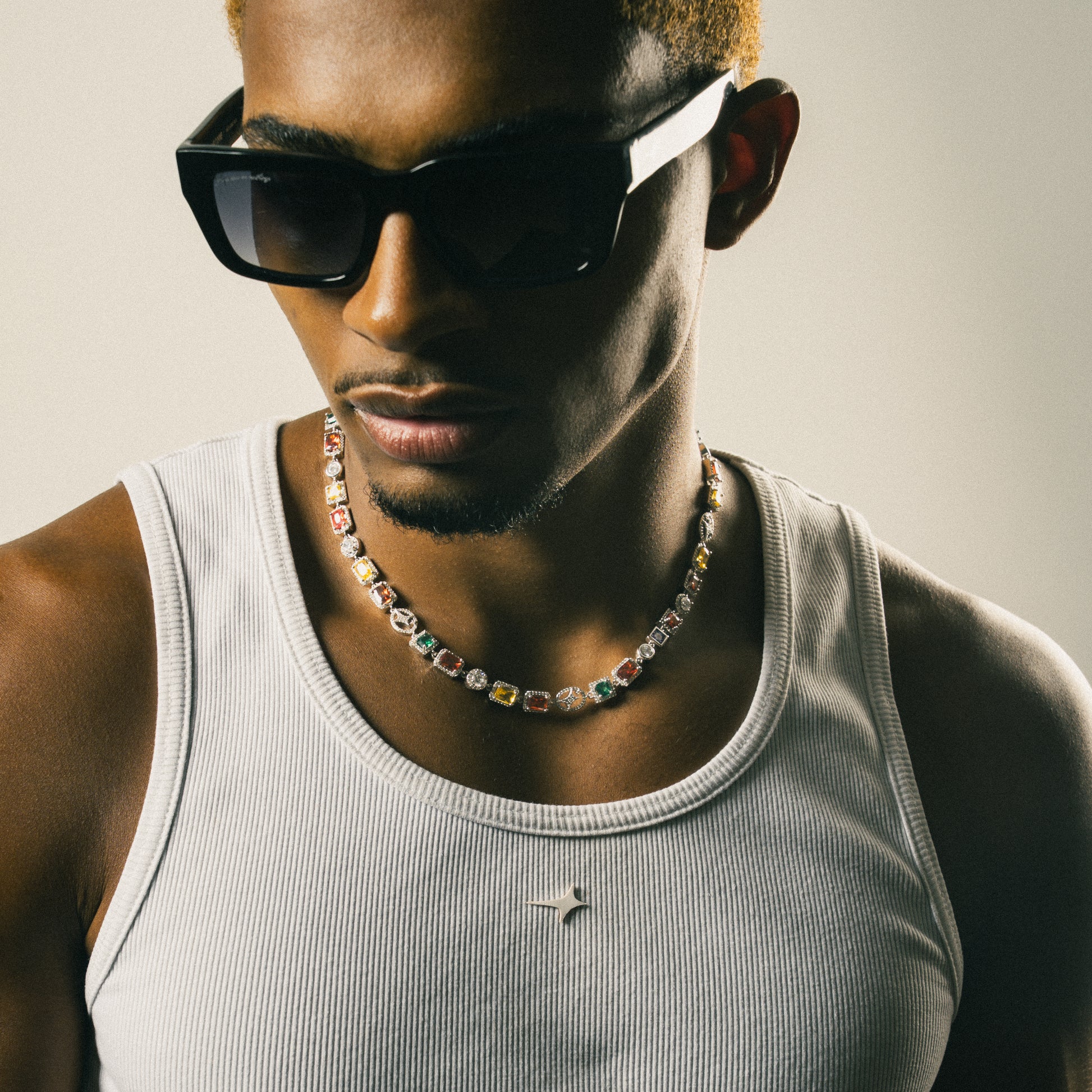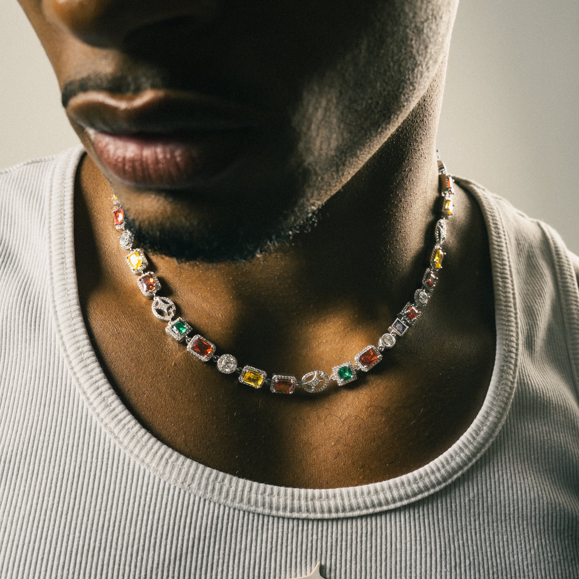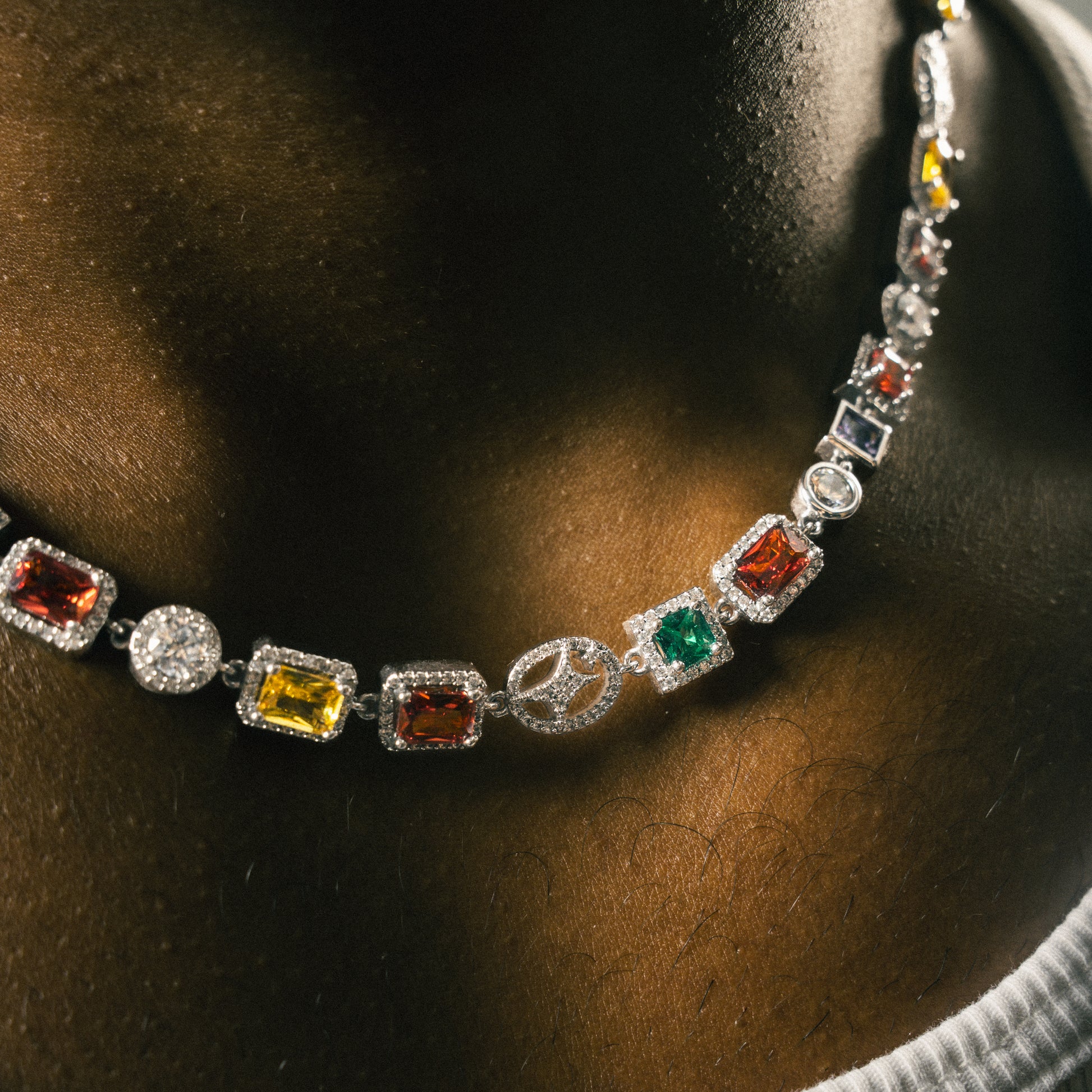 Discover our Multi Gemstone Chain, an exquisite piece that captivates with its beauty and brilliance. Each stone, varying in shape and color (yellow, red, green, and purple), is carefully selected to create a captivating visual harmony. With gems measuring 8 mm in thickness, this chain offers a true array of vibrant colors.