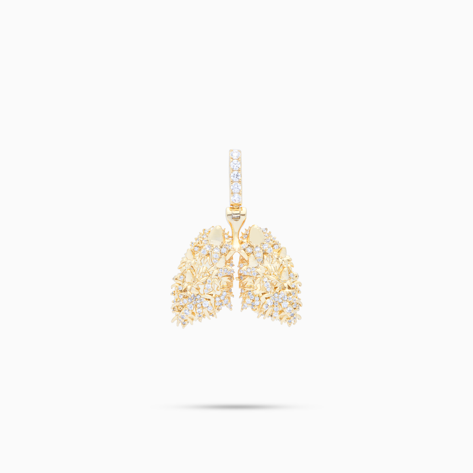 Discover our exclusive Golden Lung pendant, an iconic creation made in collaboration with High & Fines Herbes . This unique piece of jewelry features beautifully crafted lungs, adorned with finely sculpted cannabis leaves and enhanced with sparkling zirconium oxides.