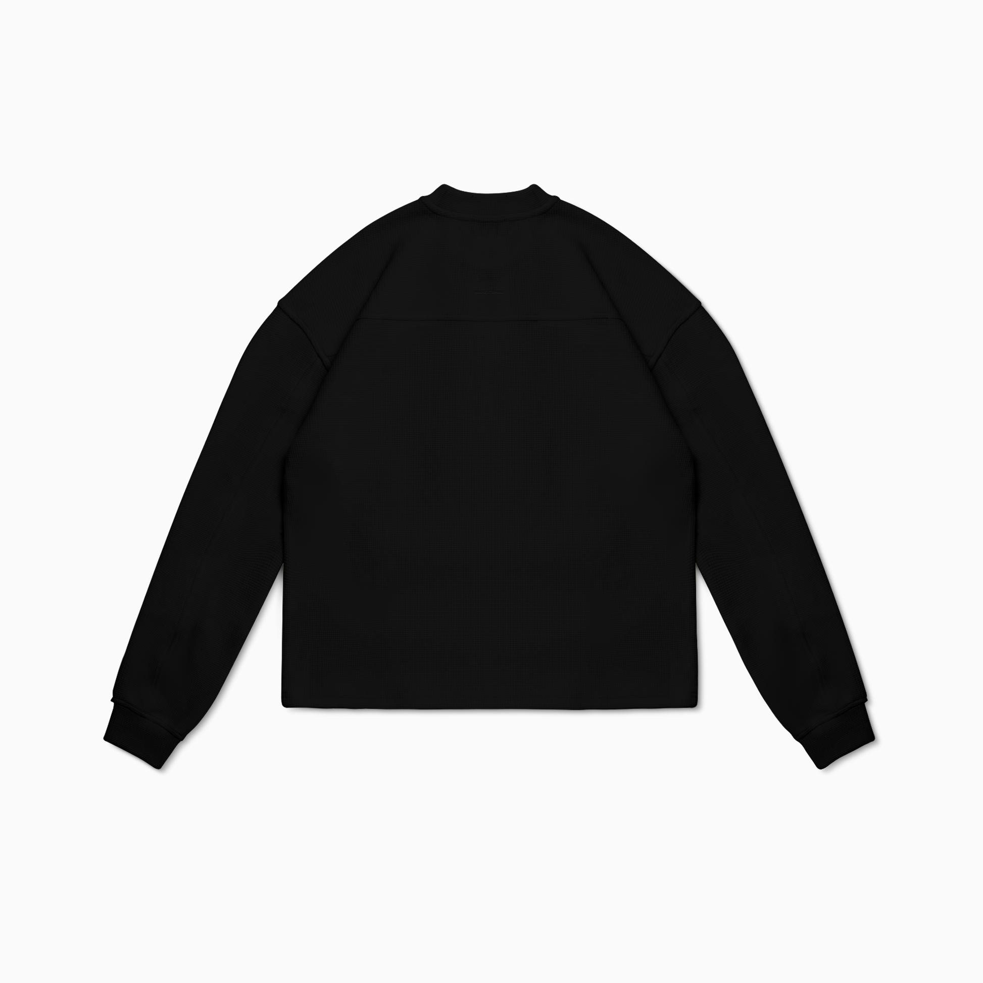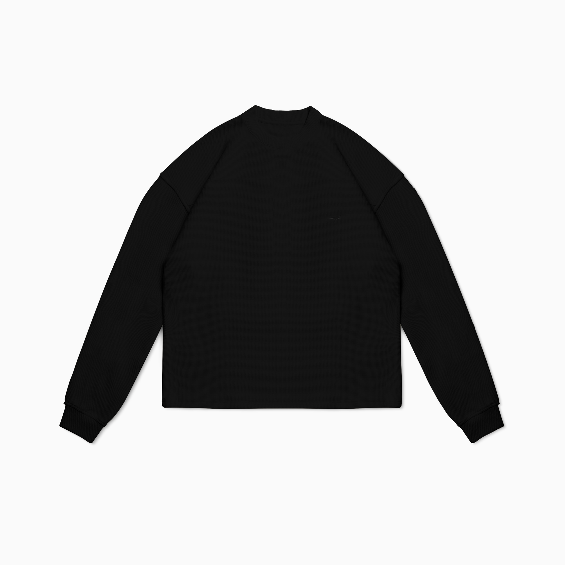 Black long-sleeved Waffle Sweater with an oversized, boxy fit, made from premium heavyweight cotton. Cuffed cuffs. Crew neck.