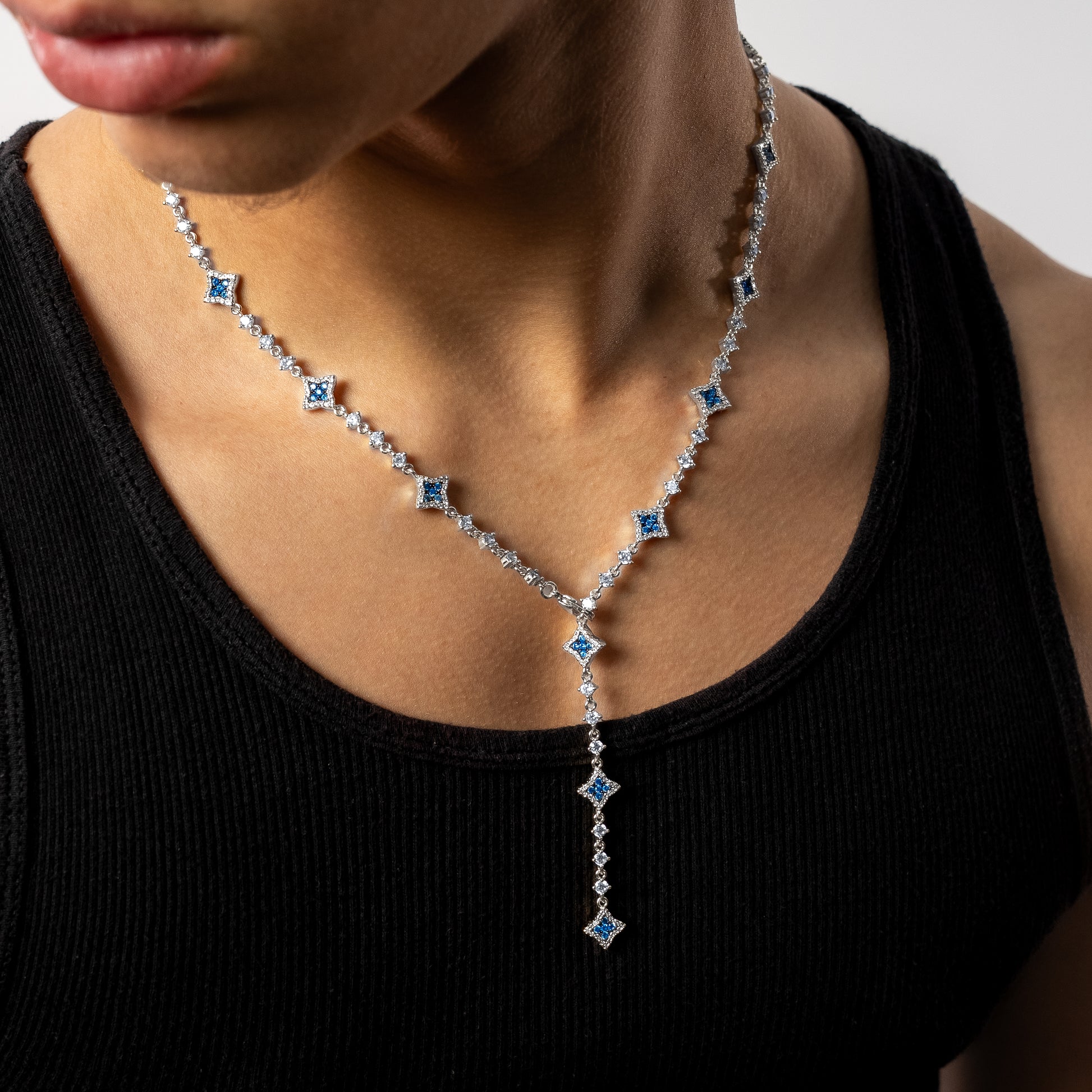 Discover our Flower Tennis Necklace, an exquisite piece that combines the timeless elegance of a tennis chain with the delicacy of flowers. Each flower, adorned with sparkling blue stones and measuring 8 mm thick, adds a touch of charm and sophistication to this 3 mm chain.