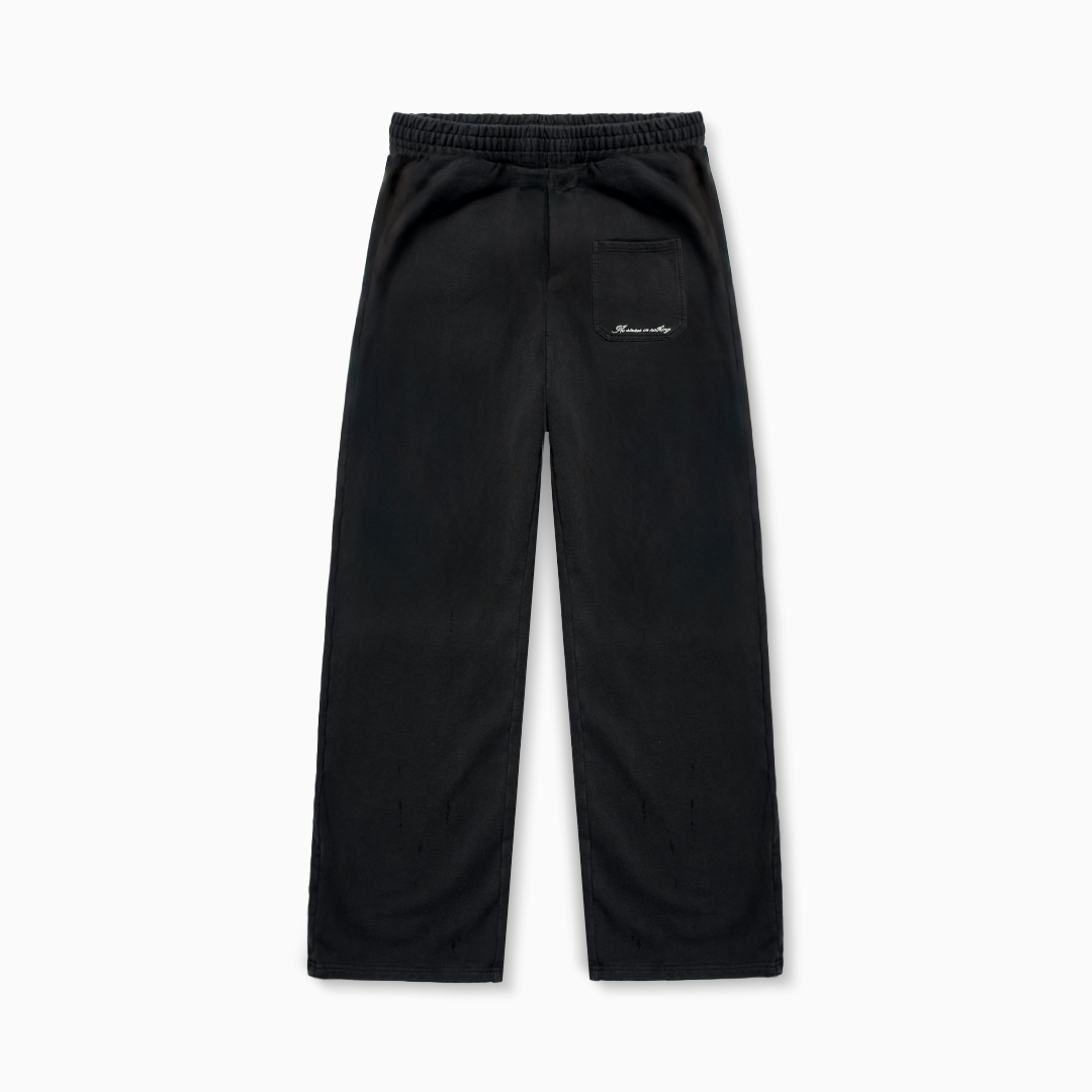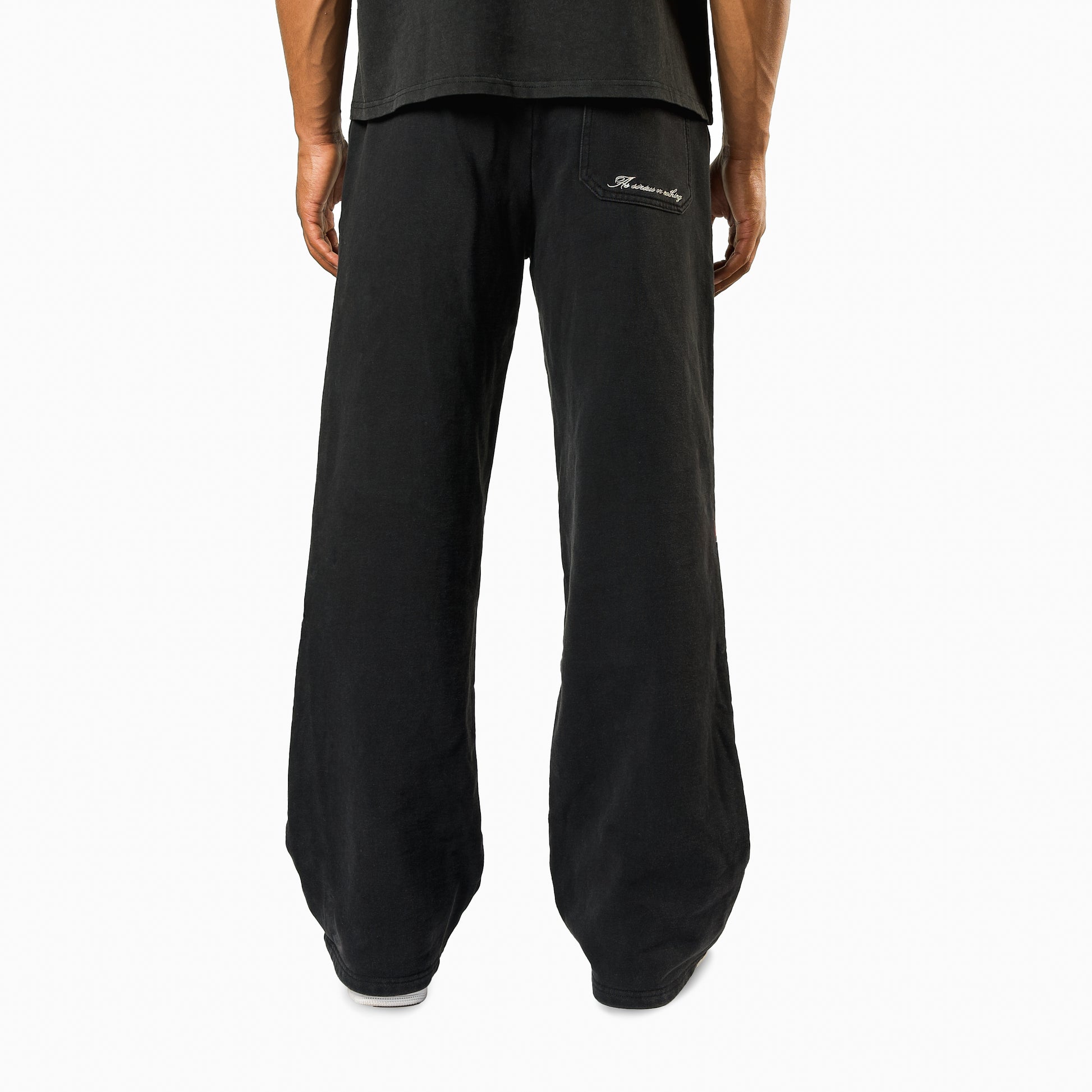 Washed black sweatpants in heavy jersey with a loose, comfortable fit, made from 100% premium cotton. Featuring practical side pockets and an elastic waistband with internal drawstrings for a secure fit.