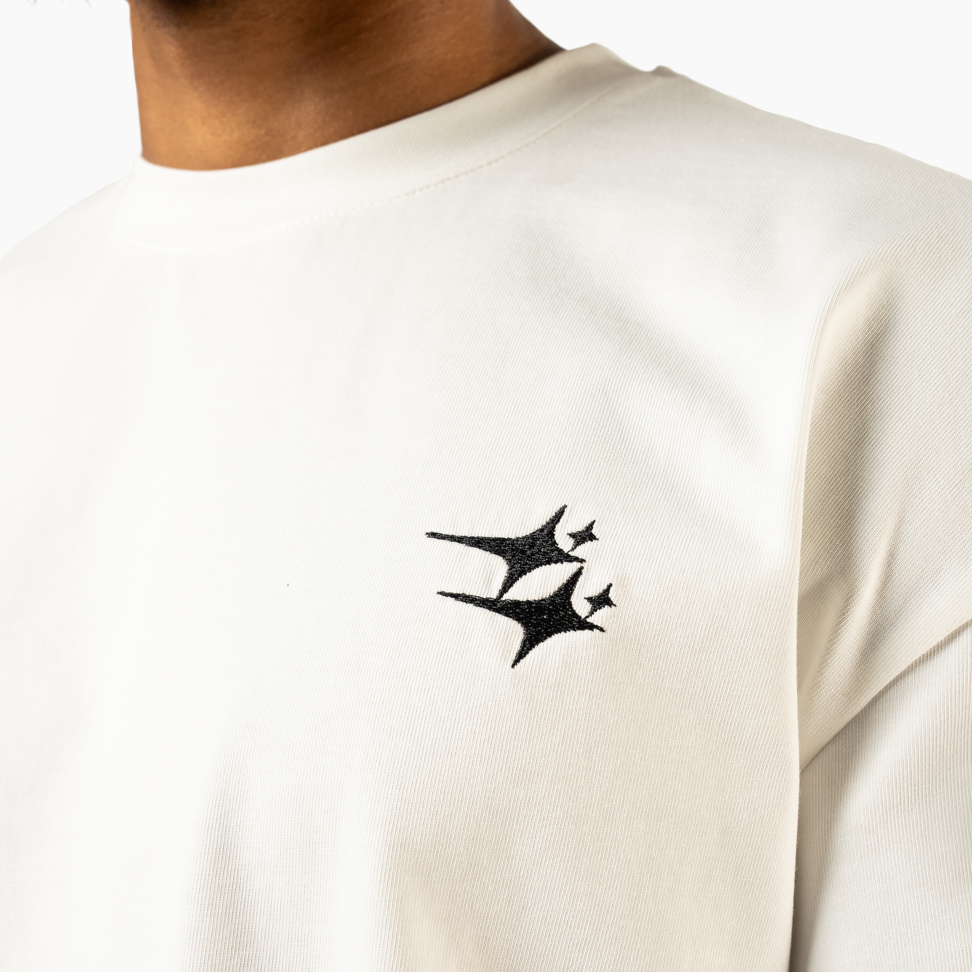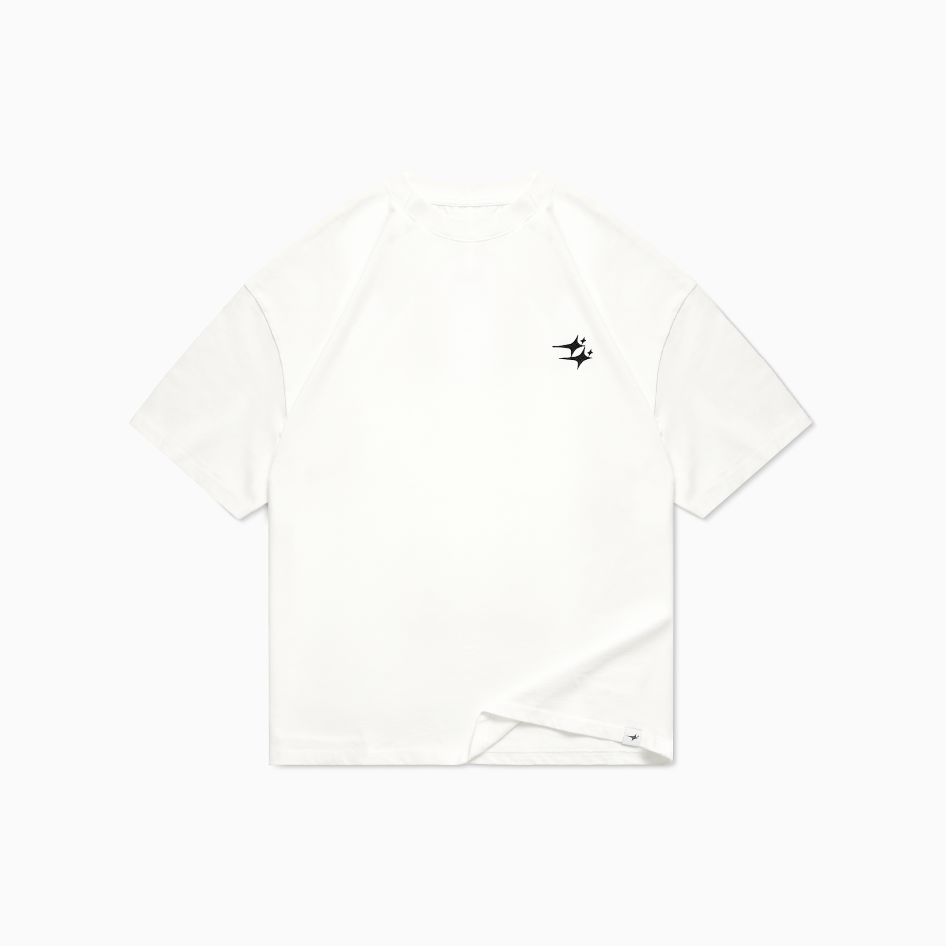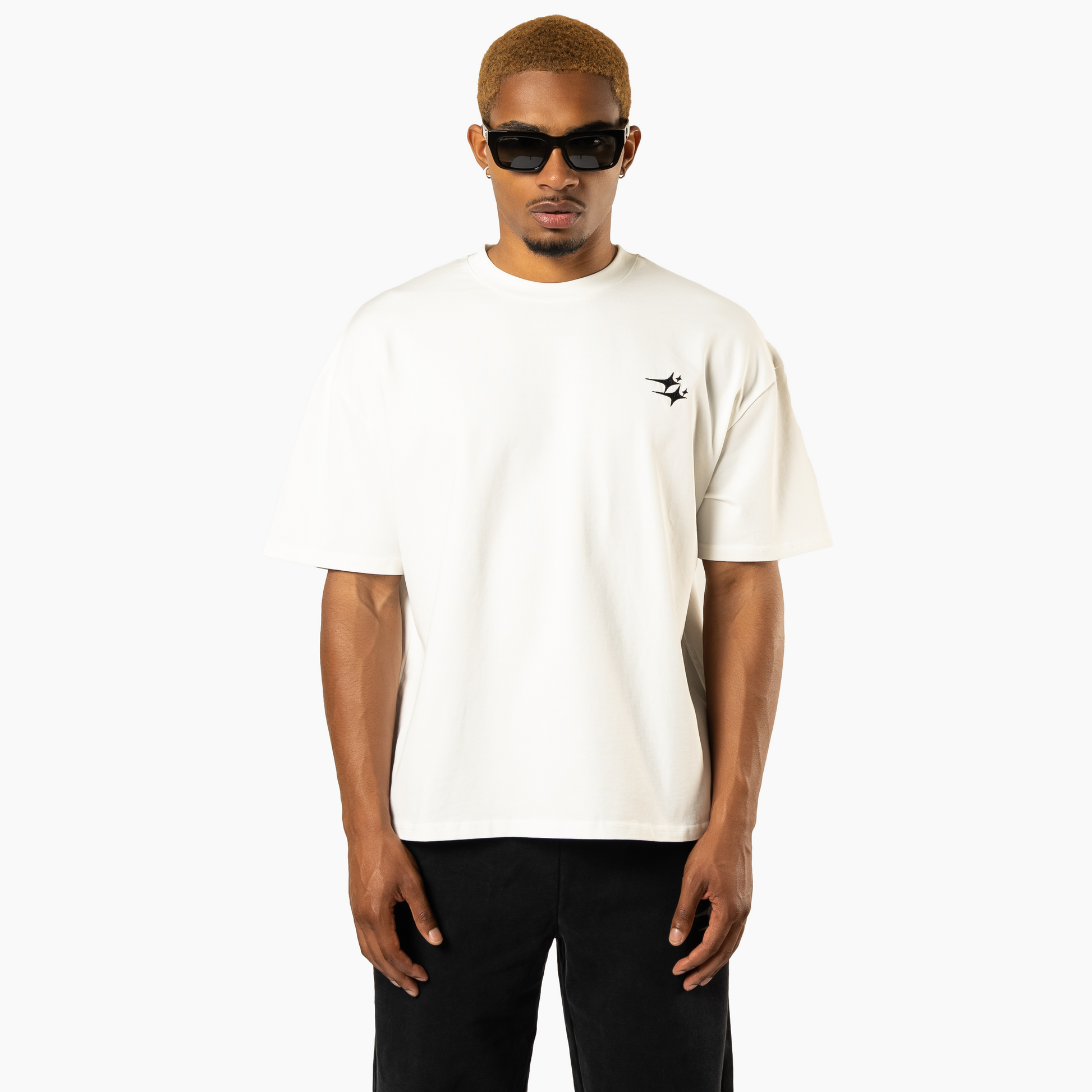 White short-sleeved jersey T-shirt with an oversized fit, made from heavyweight cotton. Ribbed crew neck.