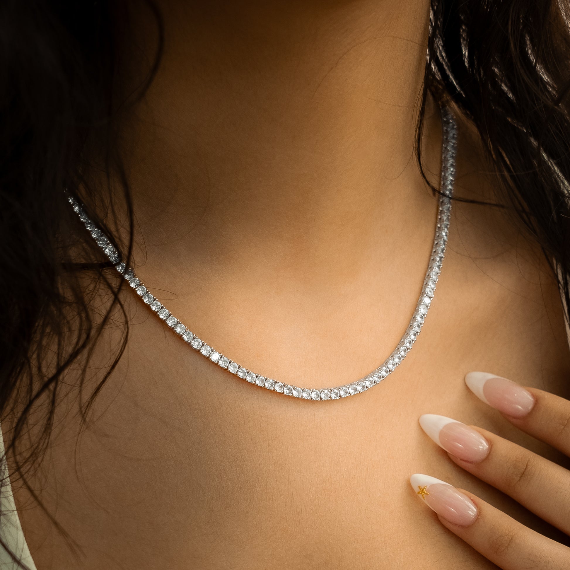 Discover our 3mm Tennis Chain , an iconic piece with masterful brilliance. Each link is set with sparkling zirconia, offering a continuous and sophisticated sparkle. Its 3mm finesse makes it a piece of jewelry that is both discreet and striking, perfect for elegantly enhancing all your outfits.