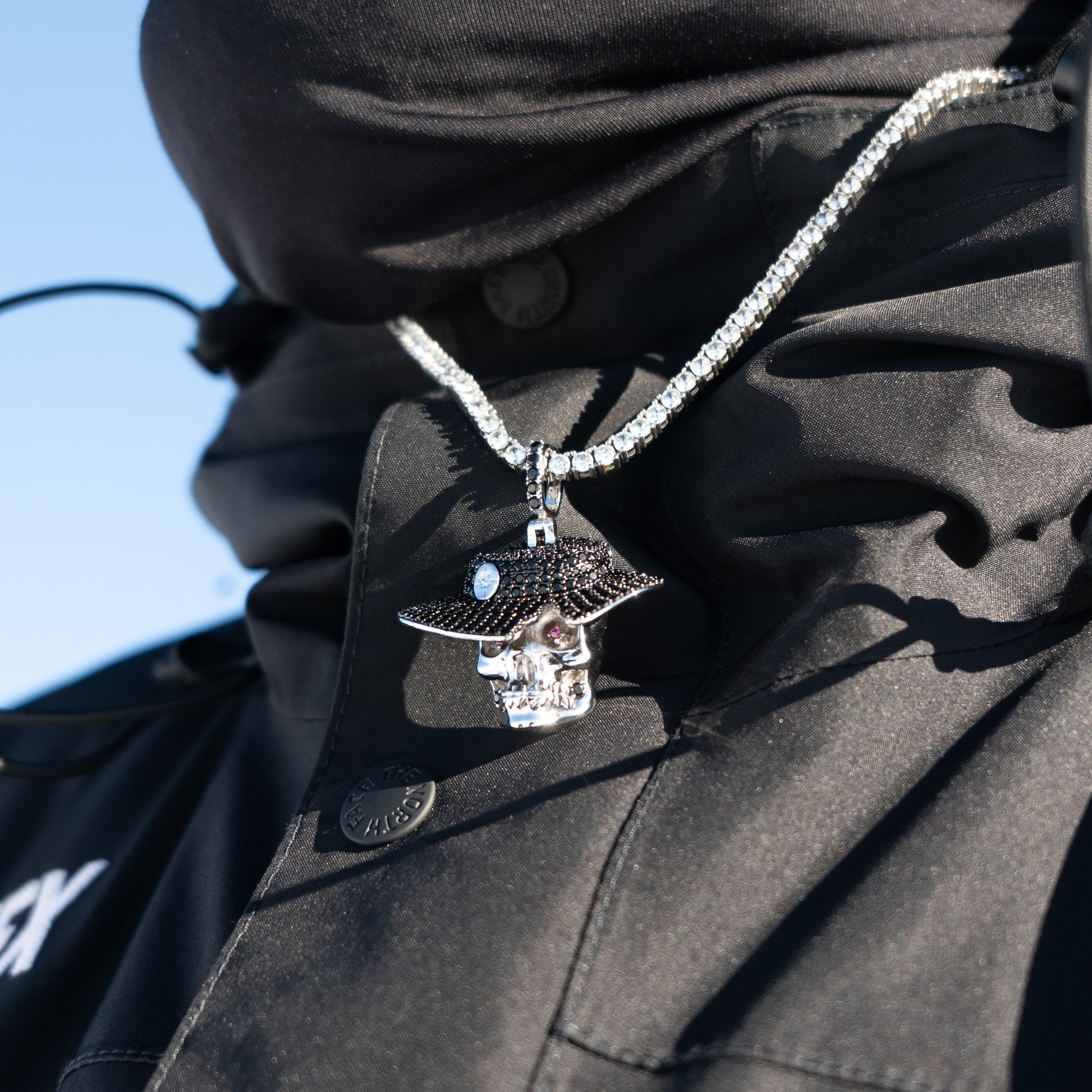 Discover our exclusive "The Last Pirate" pendant, a creation designed in collaboration with UFC fighter Morgan Charrière. This unique skull, with pink stone eyes and a pirate hat adorned with black stones, embodies the fearless spirit of the famous pirate.