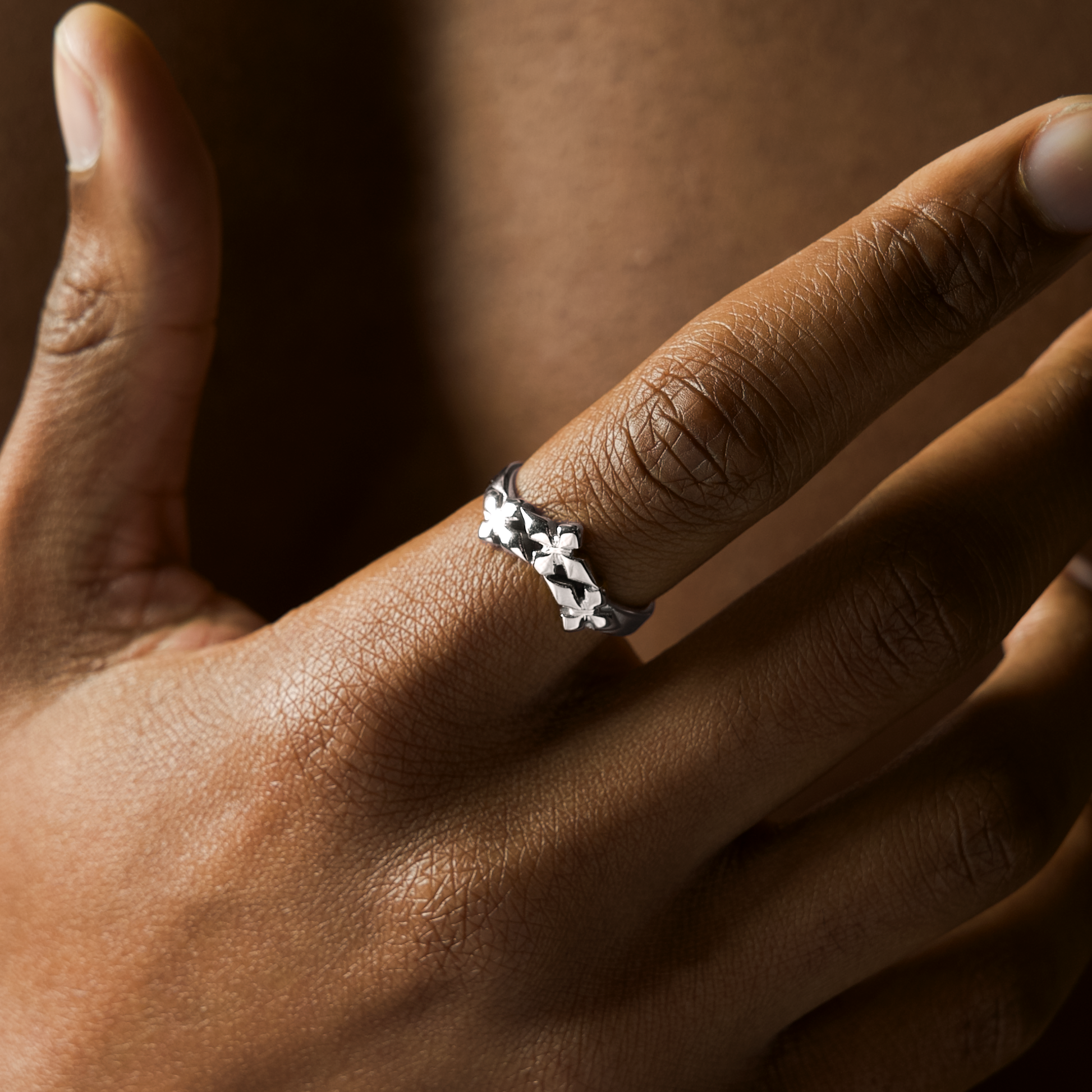 The Triple Crossed Star Ring embodies the central symbol of the Destiny collection: the starry cross.